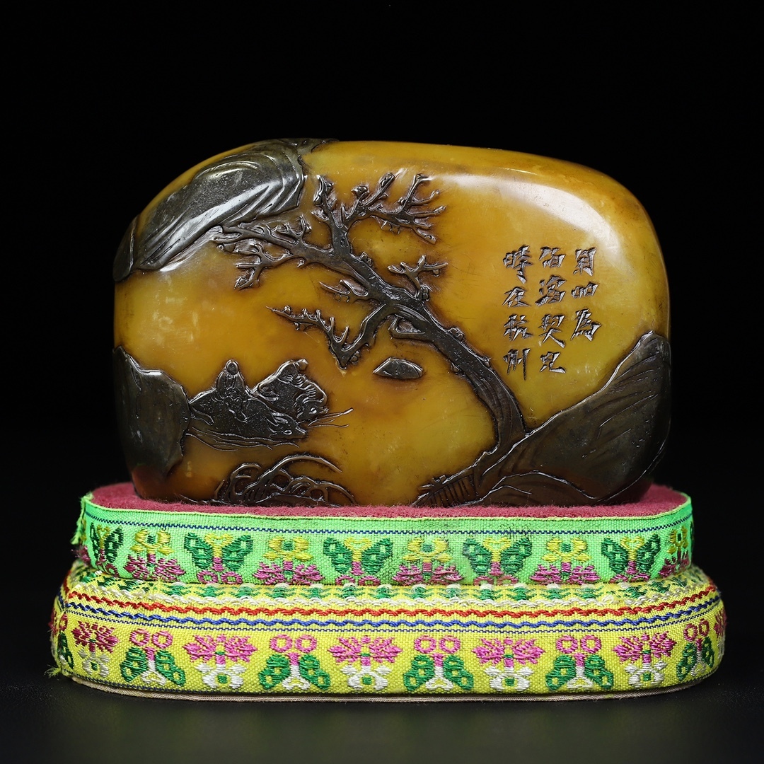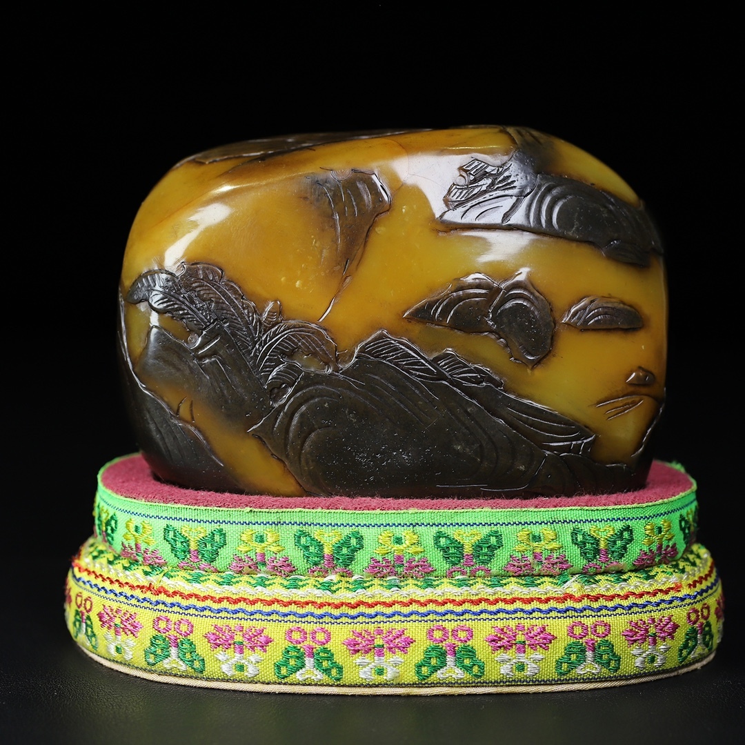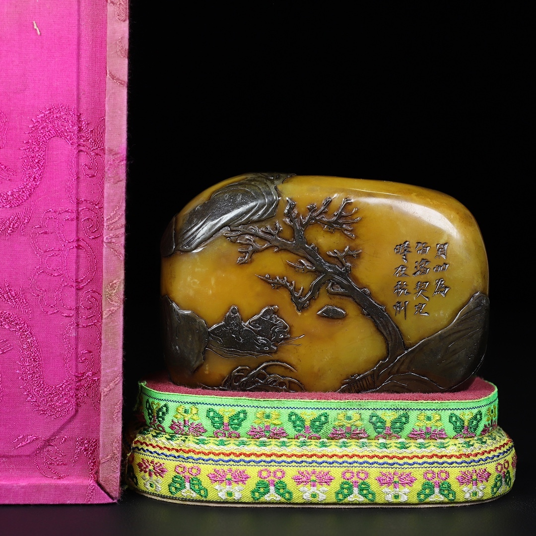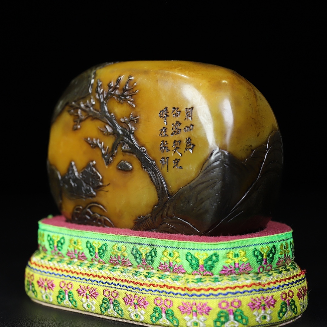 *珍品旧蔵* 清 寿山石 カラス皮 田黄彫刻【童子放牛】人物物語紋 薄意印鑑 天然石 手彫 篆刻 極細工 唐物 中国古玩 骨董品 古美味 H45