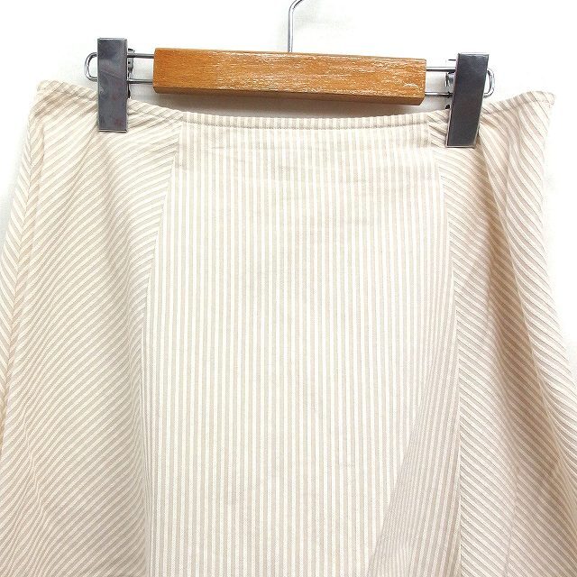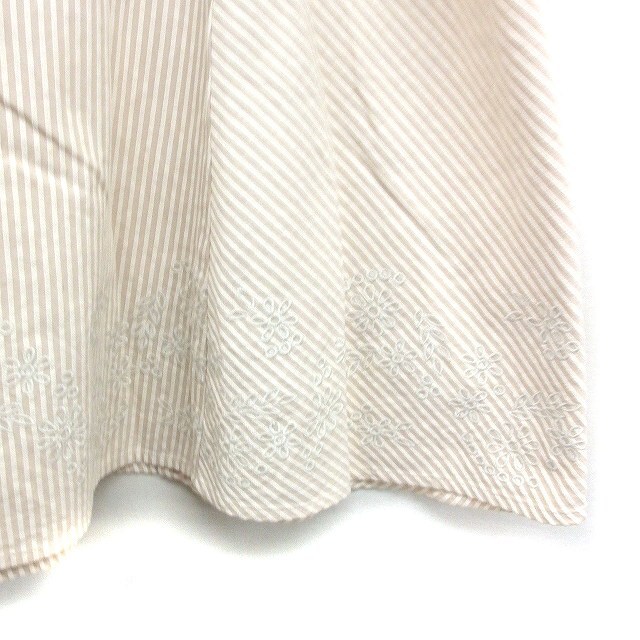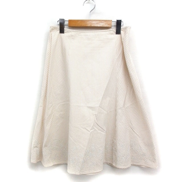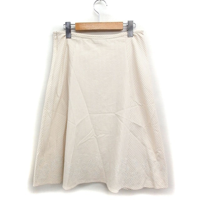 ローラアシュレイ LAURA ASHLEY ストライプ柄 フレアスカート ひざ丈 花柄刺繍 コットン 綿 11 アイボリー /FT8 レディース