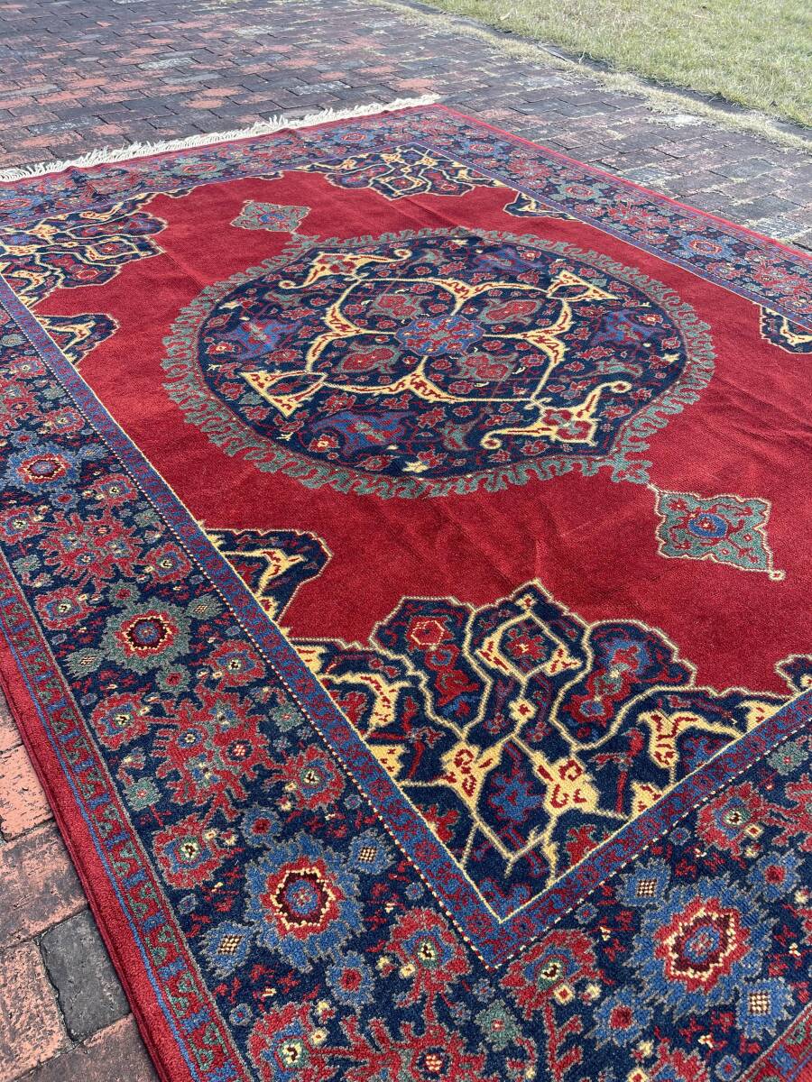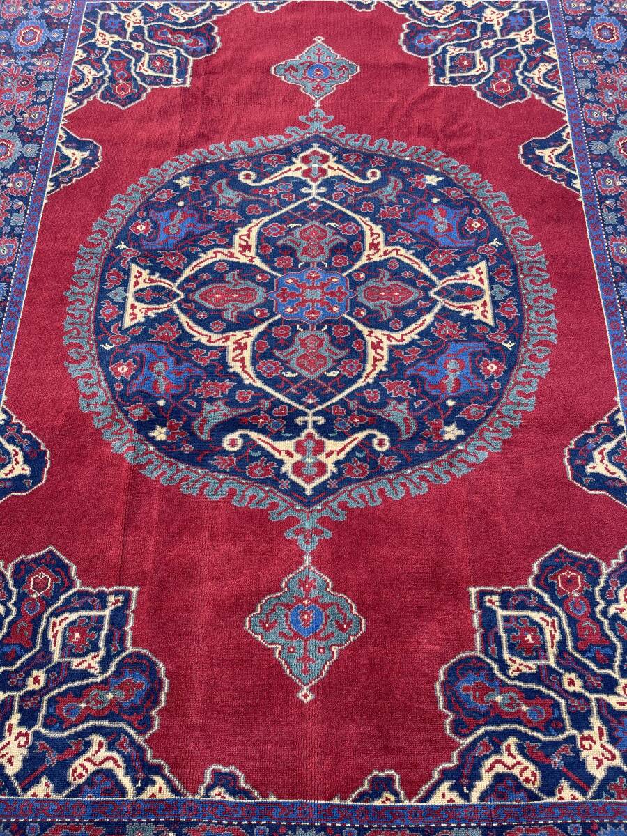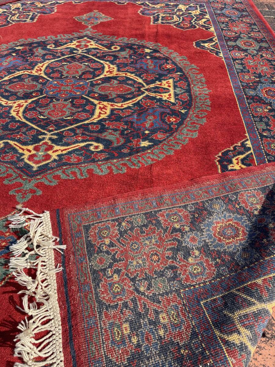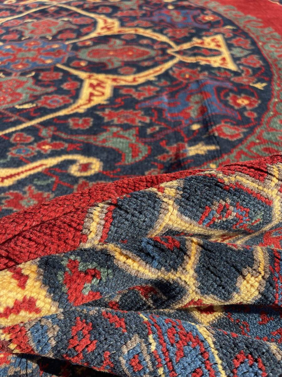 デザインは中世の宮廷用の大判絨毯で有名なウシャクメダリオン。当時のアンティーク品は今でもオークションですごい桁の値がつくほど有名です。