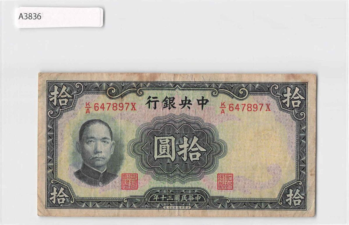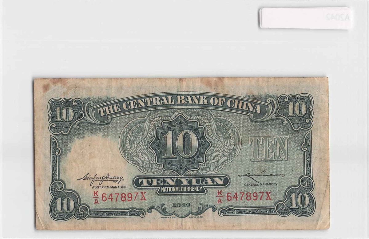 [令和コイン中国紙幣 中央銀行 10圓(1941)[A3836]7i6