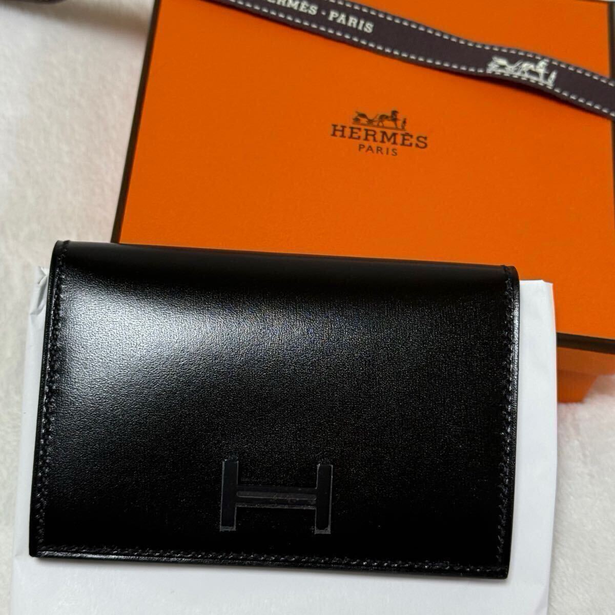 【激レア】希少 エルメス 財布 ベアンカードケース/ノワール モノクローム金具 HERMES 2つ折り ミニ財布 都内正規店2025年1月購入 ギフト用ラッピング♪