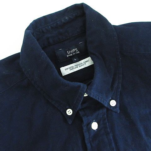 シップス SHIPS シャツ 長袖 ボタンダウン 胸ポケット USA製 コットン L ネイビー ※EKM メンズ