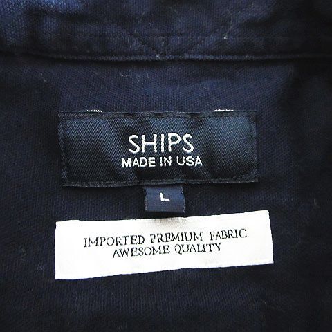 シップス SHIPS シャツ 長袖 ボタンダウン 胸ポケット USA製 コットン L ネイビー ※EKM メンズ