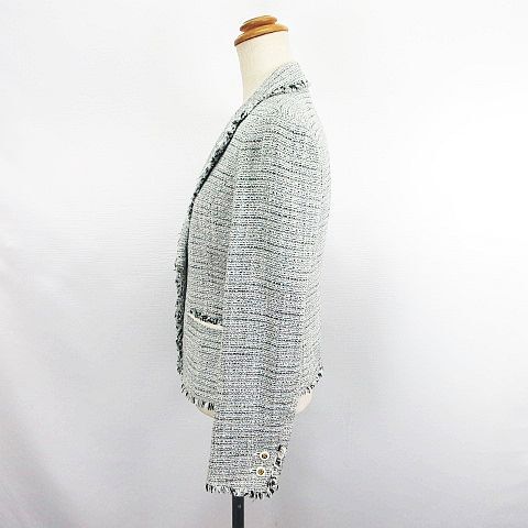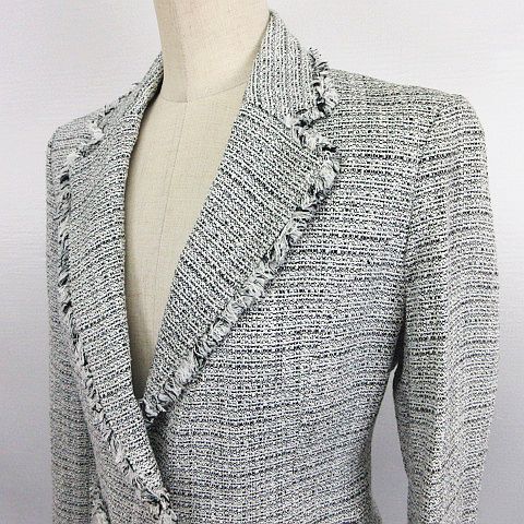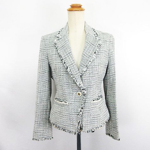 ピンキー&ダイアン & by P&D ジャケット ブレザー テーラード ツイード 長袖 シングル 総裏 フリンジ ラメ 38 グレー ※EKM レディース