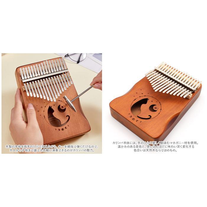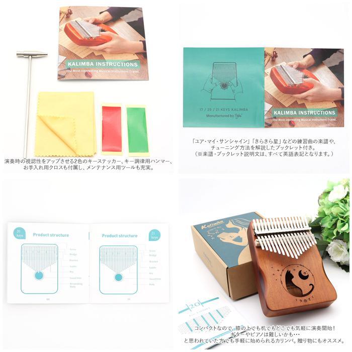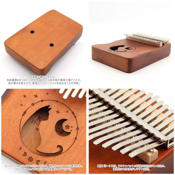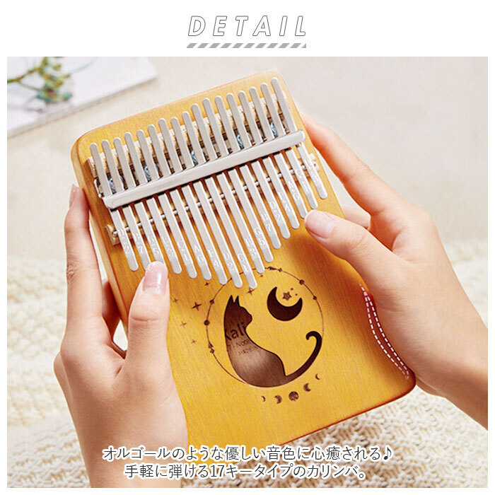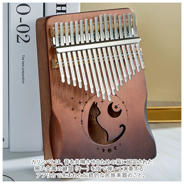 商品説明 | ・・オルゴールのような優しい音色に心癒される♪手軽に弾ける17キータイプのカリンバ。 ・カリンバとは、音を共鳴させるための箱に固定された細い金属の鍵盤(キー)を指で弾いて演奏する、アフリカで生まれた伝統的な民族楽器のこと。 ・木製の本体を両手のひらで支えながら、キーを親指で弾くだけなので、大人から子供まで誰でも気軽に演奏できるのがカリンバの魅力。 ・カリンバ本体には、手のひらに優しく馴染むマホガニー材を使用。温かみのある音色と、使い込むほどに味わい深く変化する色合いは天然木ならではのもの。 ・鍵盤(キー)には、アルファベットの音階が刻まれているため、視覚的にも演奏がしやすい設計。 ・演奏に慣れてきたら、本体裏側の2つのバックサウンドホールを中指や薬指で塞ぐことで、音の響きを変えたり、音色にバリエーションを加えることも可能。 ・・「ユア・マイ・サンシャイン」「きらきら星」などの練習曲の楽譜や、チューニング方法を解説したブックレット付き。(※楽譜・ブックレット説明文は、すべて英語表記となります。) ・演奏時の視認性をアップさせる2色のキーステッカー、キー調律用ハンマー、お手入れ用クロスも付属し、メンテナンス用ツールも充実。 ・ビンテージ感のあるマホガニー材には、猫と月のモチーフが彫刻され、リビングに飾っておくだけでも素敵なインテリアに。 ・コンパクトなので、膝の上でも机でもどこでも気軽に演奏開始!ギターやピアノは難しいかも・・・と思われていた方でも手軽に始められるカリンバ。贈り物にもオススメ。 |
