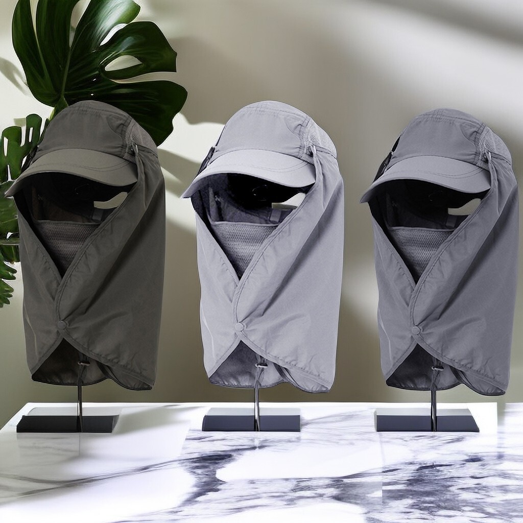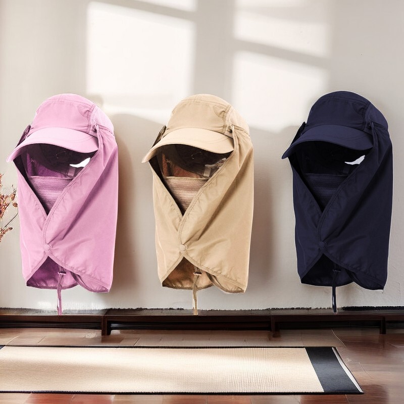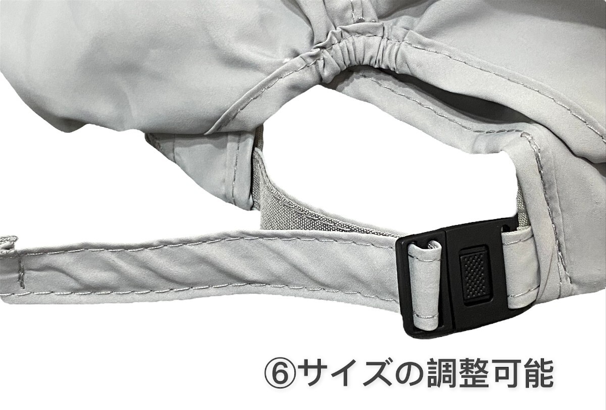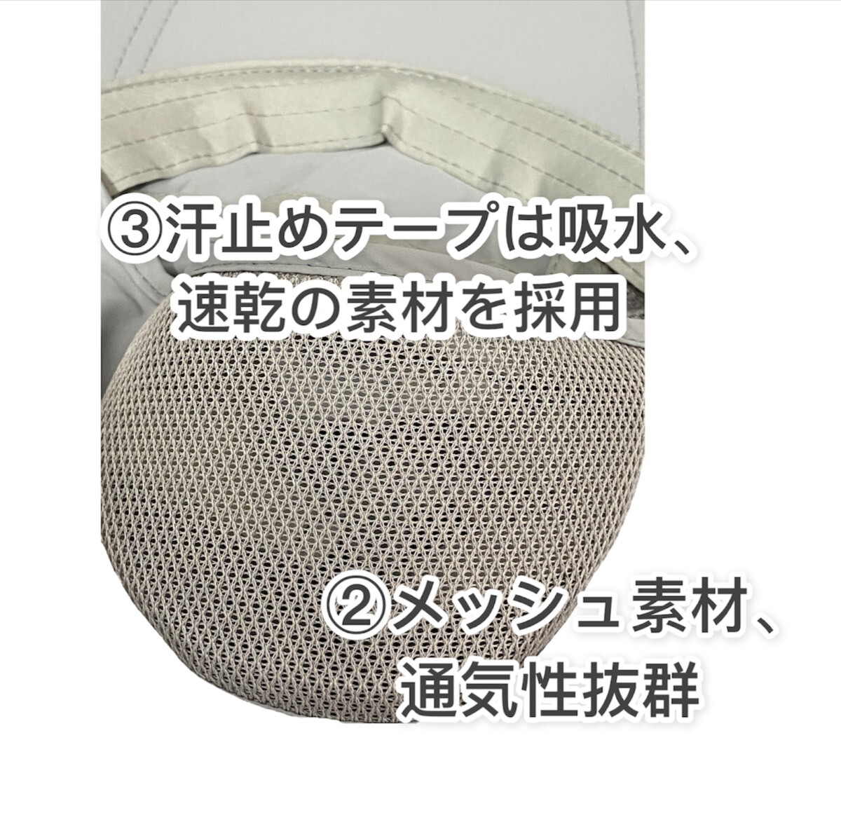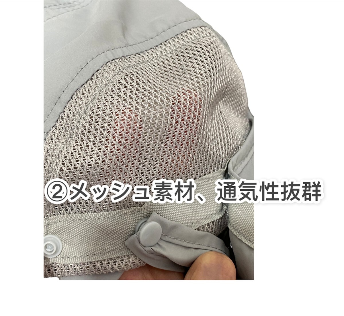 薄手の生地で超軽量に仕上げまして、長時間かぶっても疲れません!速乾ドライ生地で汗の乾きも早いです。また帽子の横部分と鼻、口の部分はメッシュ素材になっていますので、通気性が抜群で、顔のカバーをつけても息苦しくなりません。
