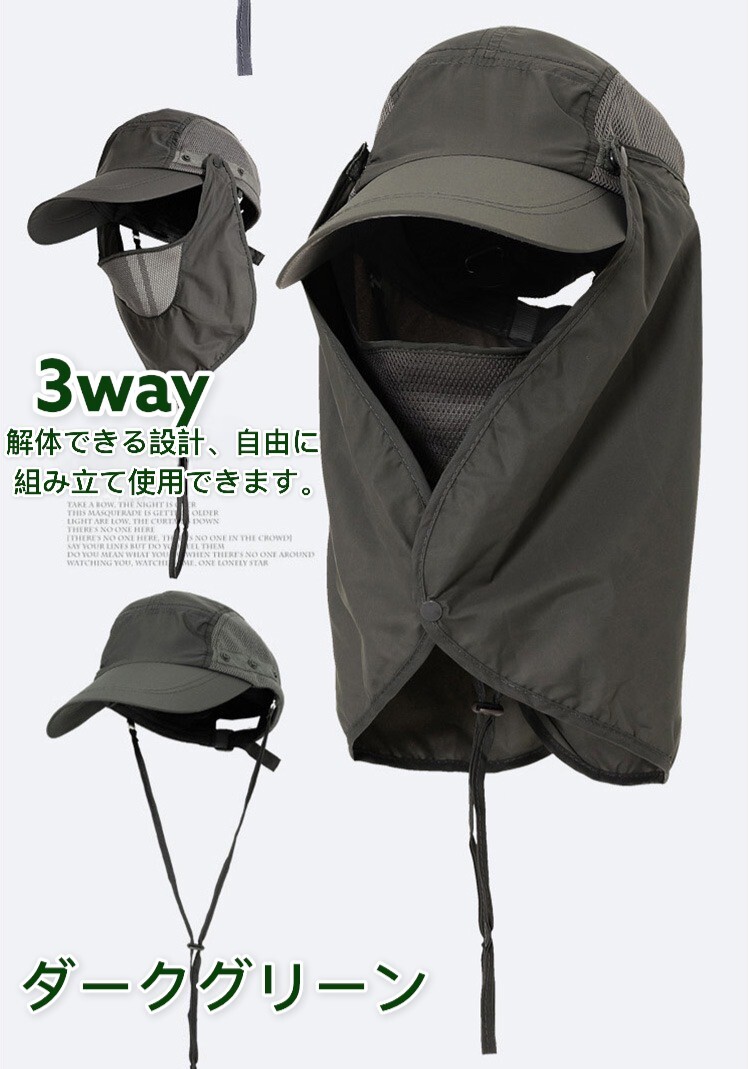 【素材】: ポリエステル素材、ハット中部とフェイスマスクにはメッシュ素材を採用し、通気性抜群です。