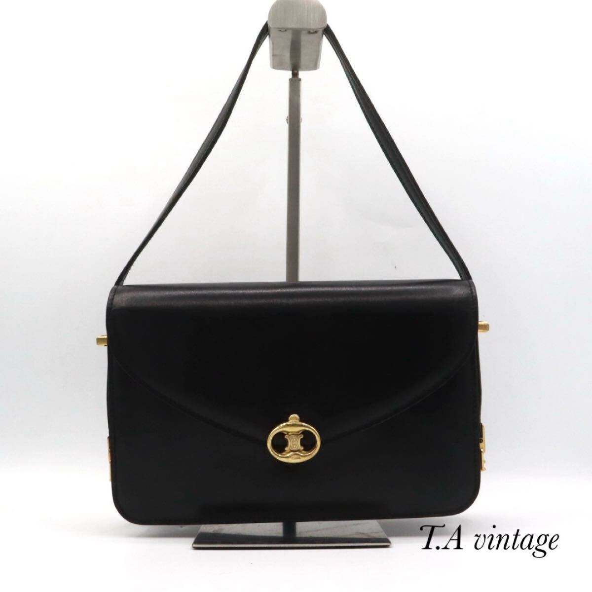 品名 セリーヌ トリオンフ カーフスキン ハンドバッグ ブラック ゴールド