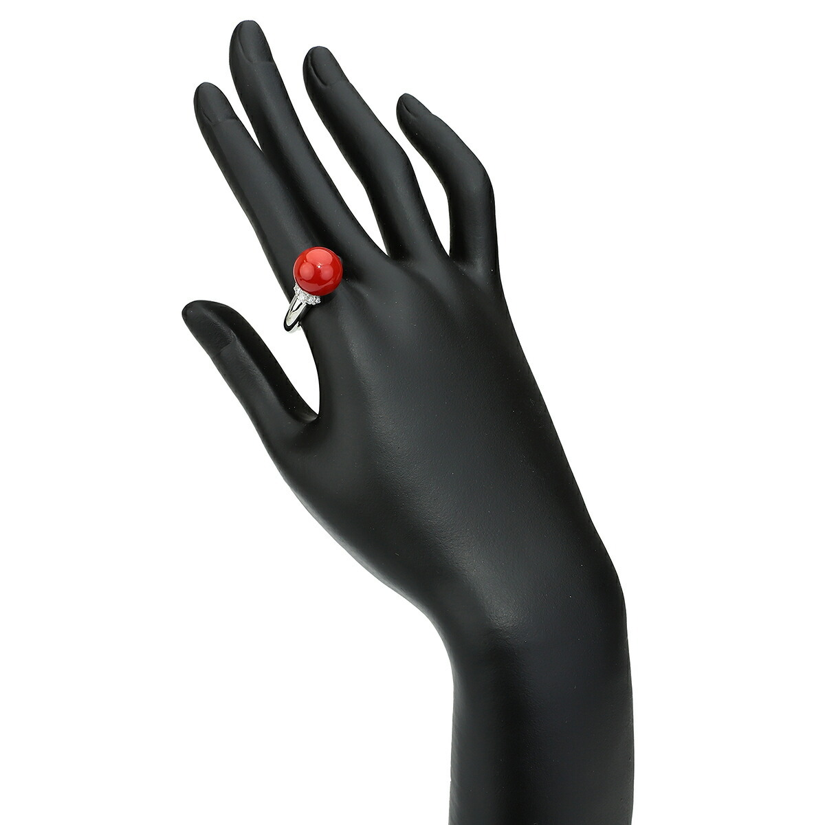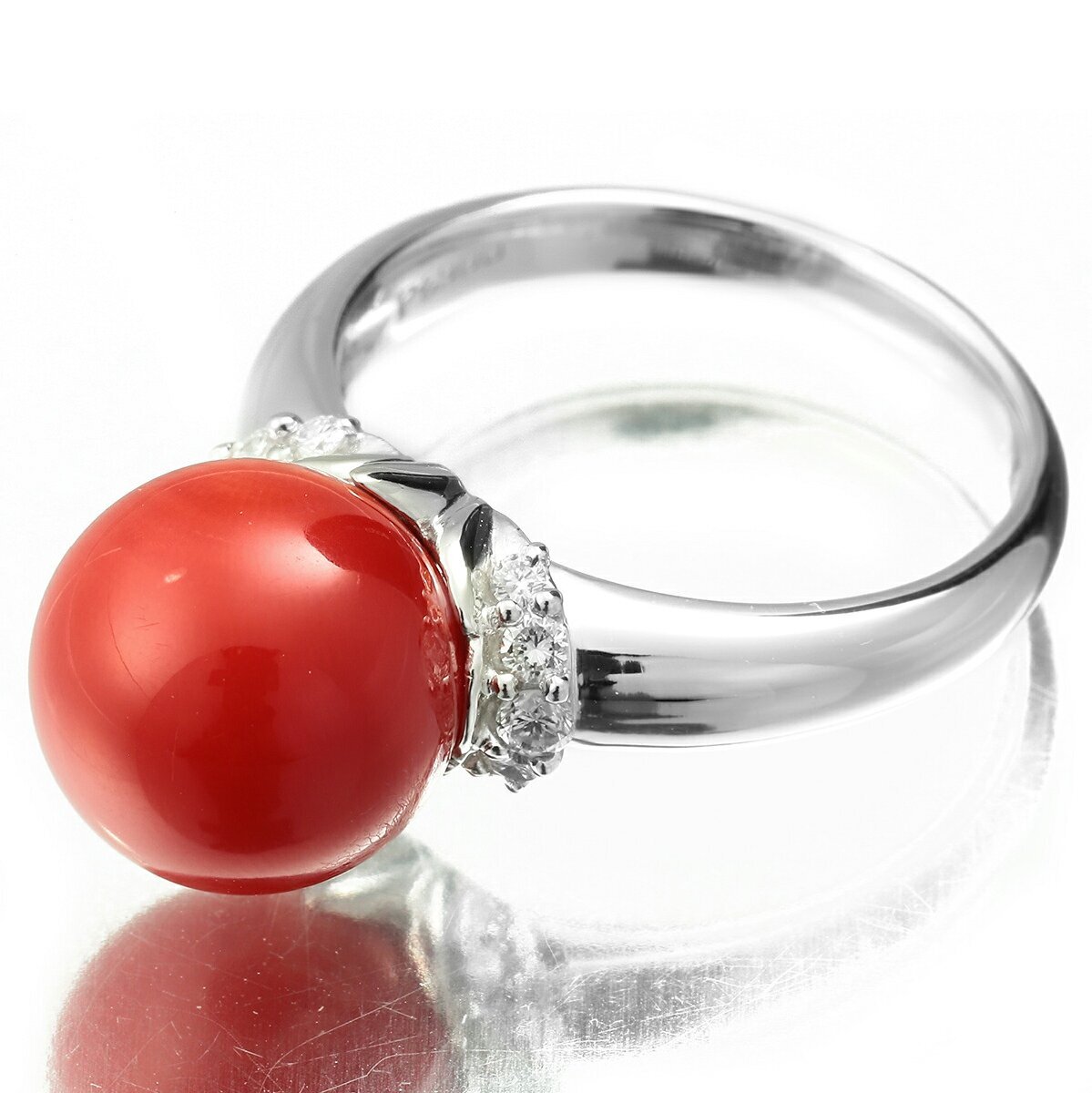 希少価値が高まる「珊瑚」。深みのある大変美しい赤色の珊瑚をセンターに配したリング。両脇に添えられたダイヤモンドが手元を華やかに飾ってくれます。