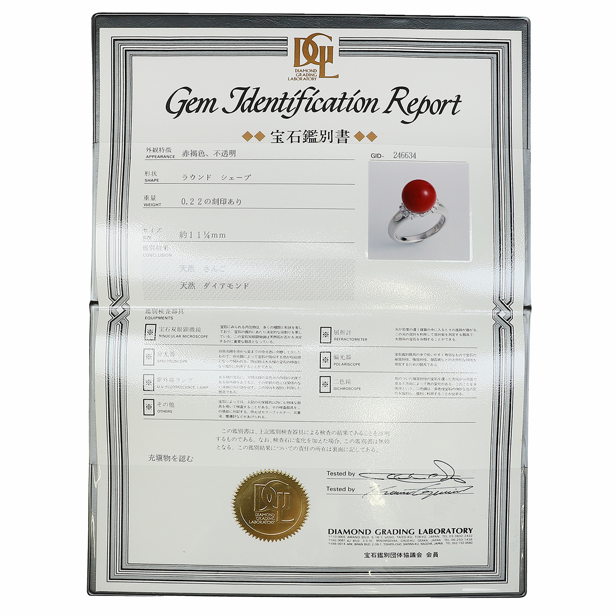 サンゴ 11.3mm / ダイヤモンド 0.22ct