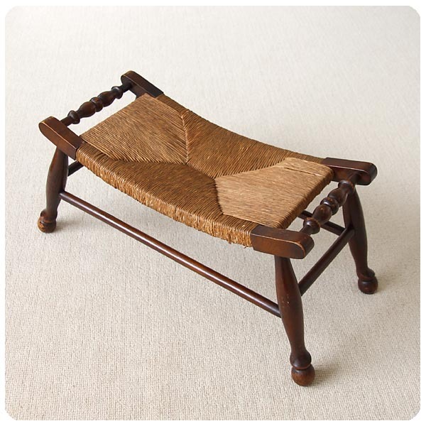 イギリスから直輸入したラッシュ (イグサ)シートのアンティークスツール。がたつき&ぐらつきございません。