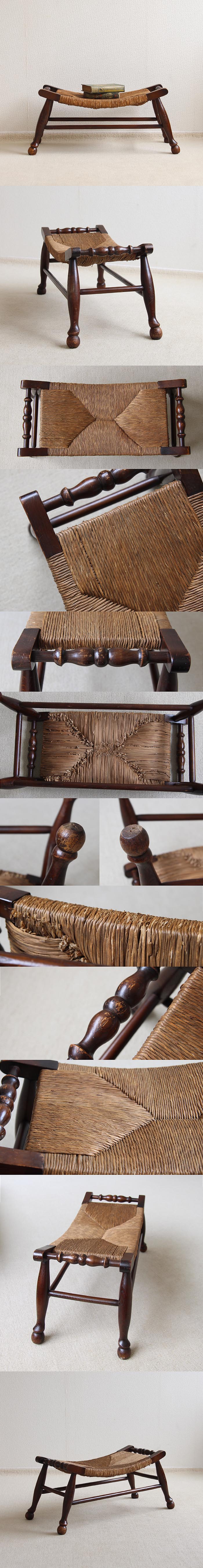 イギリス アンティーク ラッシュシート スツール イグサ 木製椅子 インテリア 家具 店舗什器 K-456