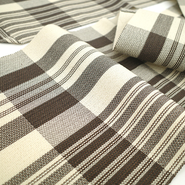 こちらのお品は、アイボリー×こげ茶色 でチャック柄が織り上げられています。