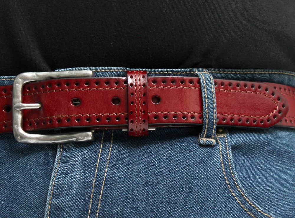 商品名 | 【新品】 F レッド イタリアンレザー ベルト 大きいサイズ メンズ 本革 パンチング ピンバックル レザーベルト |