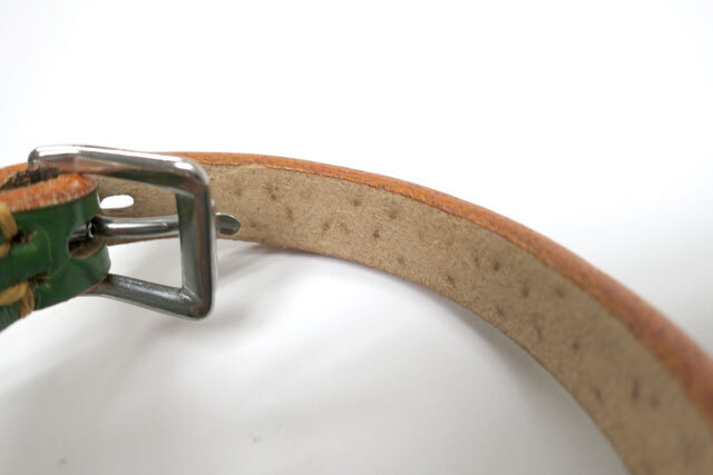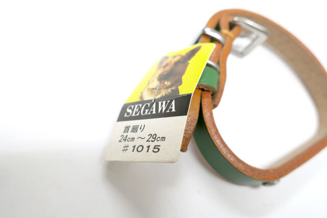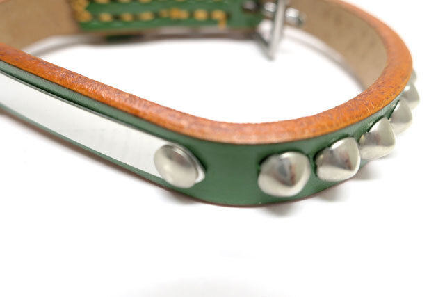【訳あり】瀬川製作所剣鋲付一枚皮平首輪(1015)首回り24-29cmまでの犬用 グリーン 幅12mm【定形郵便140円対応】