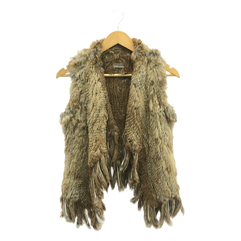 YVES SALOMON / イヴサロモン | ラビット ファー フリンジ ベスト | 36 | ブラウン | レディース