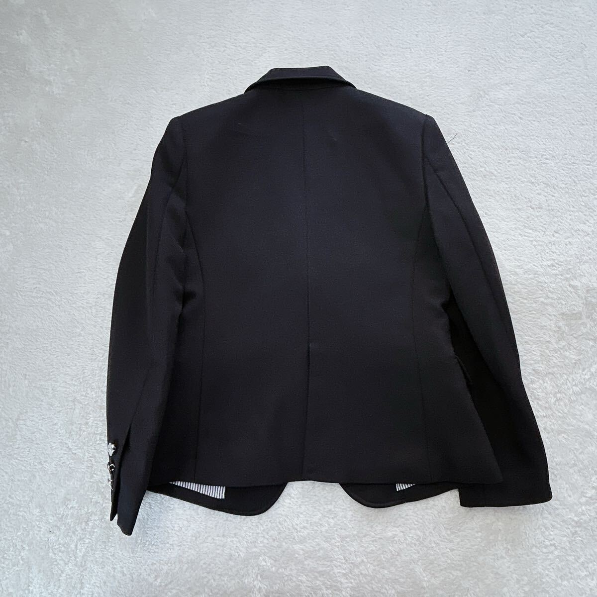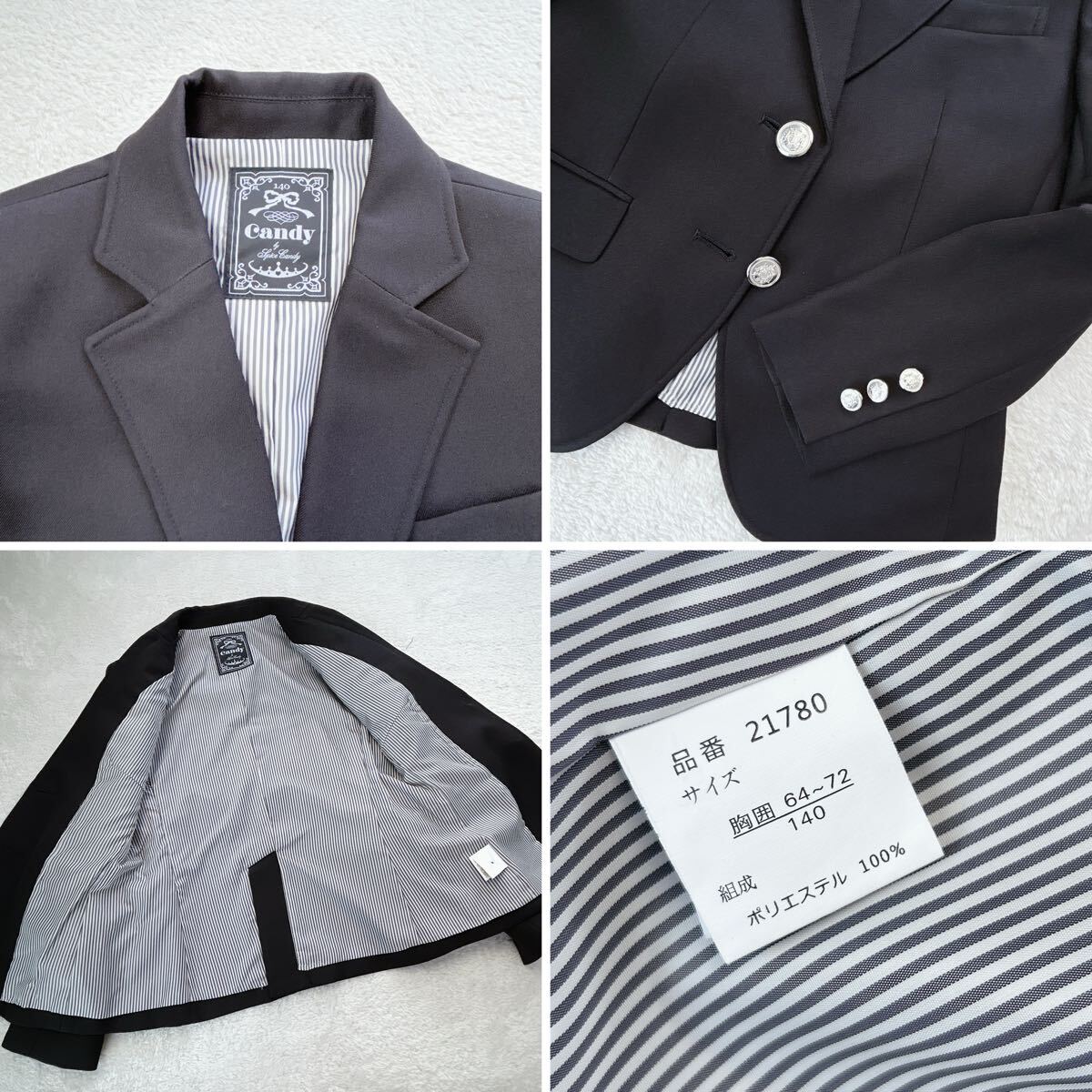 | ご覧いただきありがとうございます。 【ルネートル】では、古着を多数出品中です。ぜひご覧ください 商品名: フォーマル スーツ カラー: 黒 サイズ: 140cm スカートウエスト調整ゴムボタンあり 特徴: 上品なブラックフォーマルスーツです。ジャケットとスカートのセットで、卒園式、入学式、発表会など、様々なフォーマルなシーンで活躍します。 シックな黒色のジャケットは、シルバーのボタンがアクセントになっています。左胸にはポケット、両サイドにはフラップ付きのポケットが付いています。裏地はストライプ柄で、見えない部分にもこだわりが感じられます。 スカートは、ふんわりと広がるプリーツスカートで、左サイドには可愛らしい取り外し可能なリボンが付いています。 状態: 中古品 素材: ポリエステル | |||