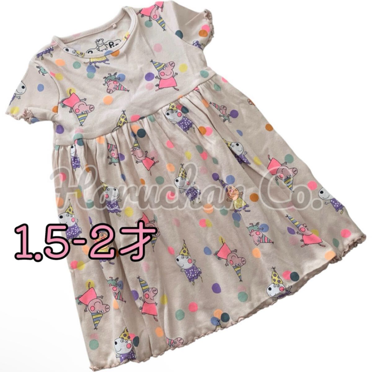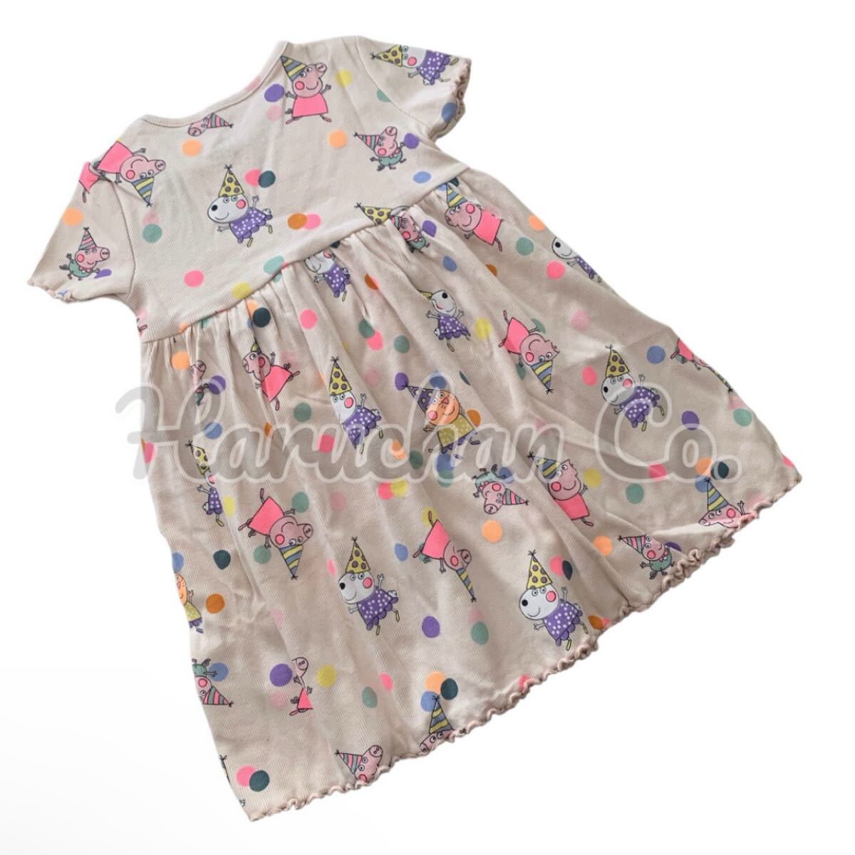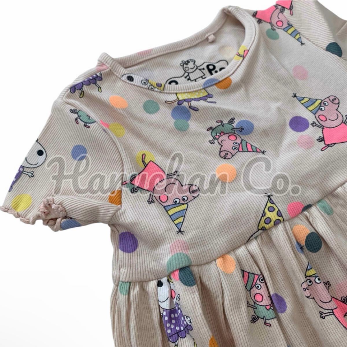 クリーム色に、パステルカラーやネオンカラーのドット柄がカワイイPeppa Pigのハッピーな半袖ワンピース