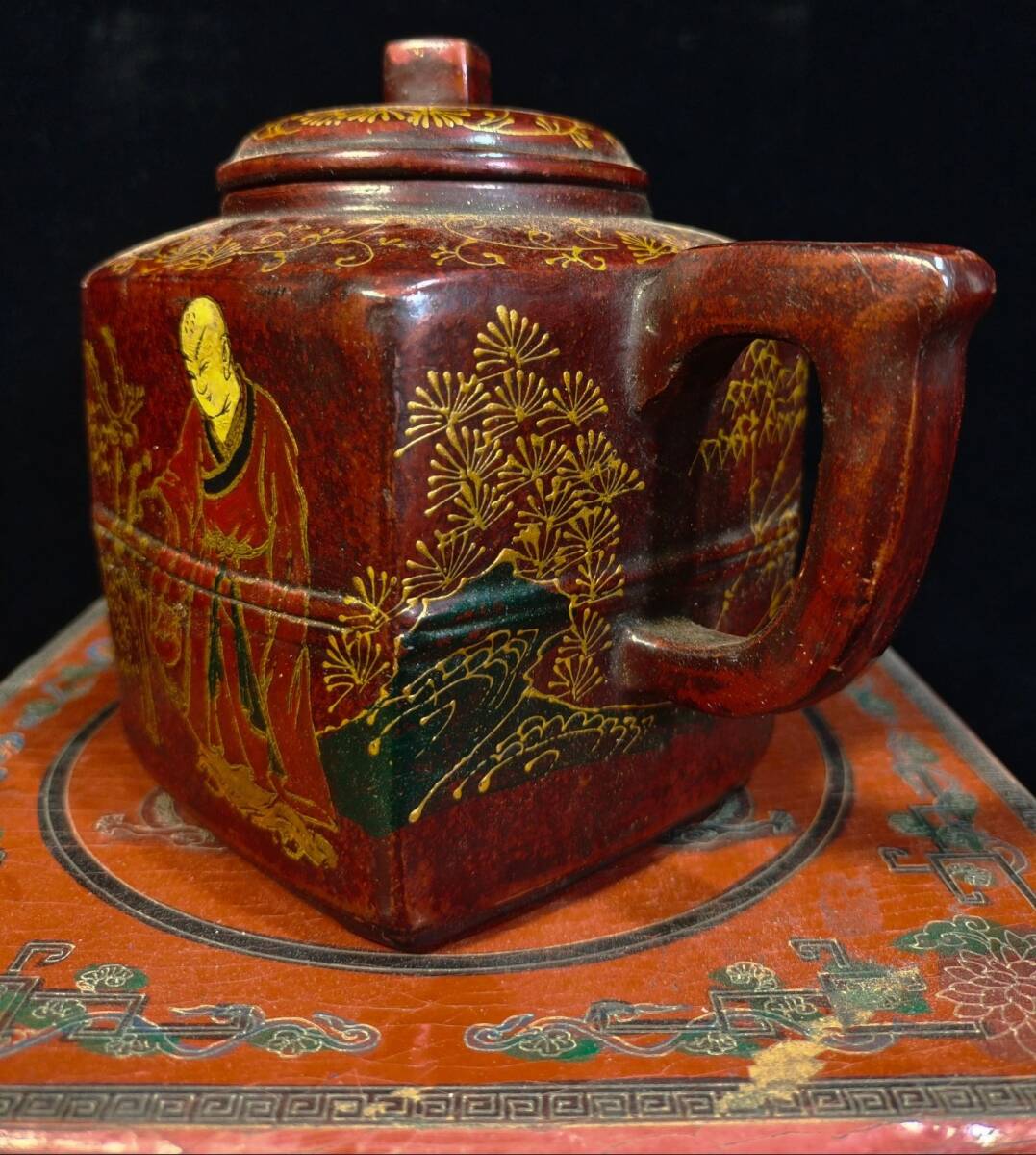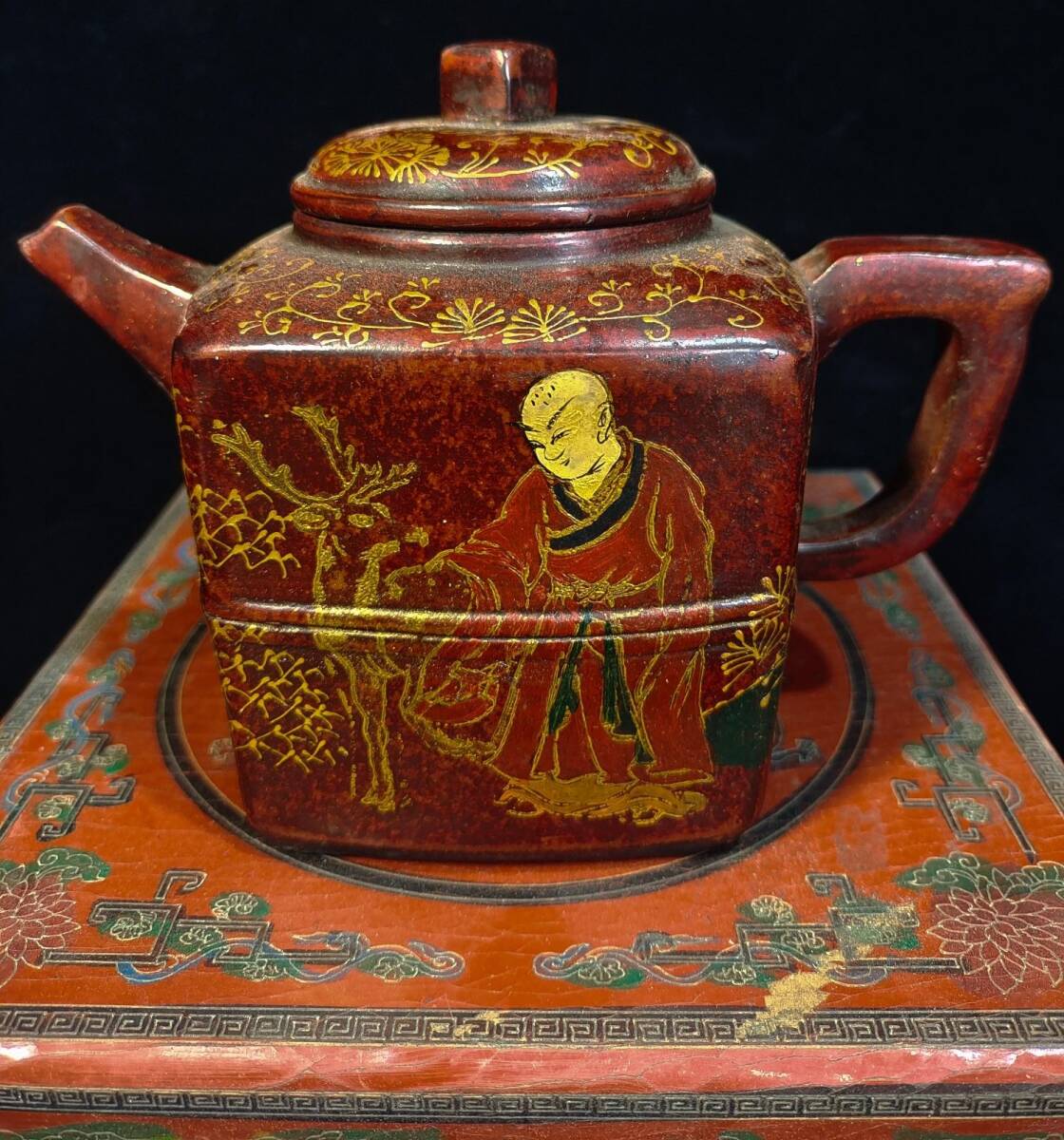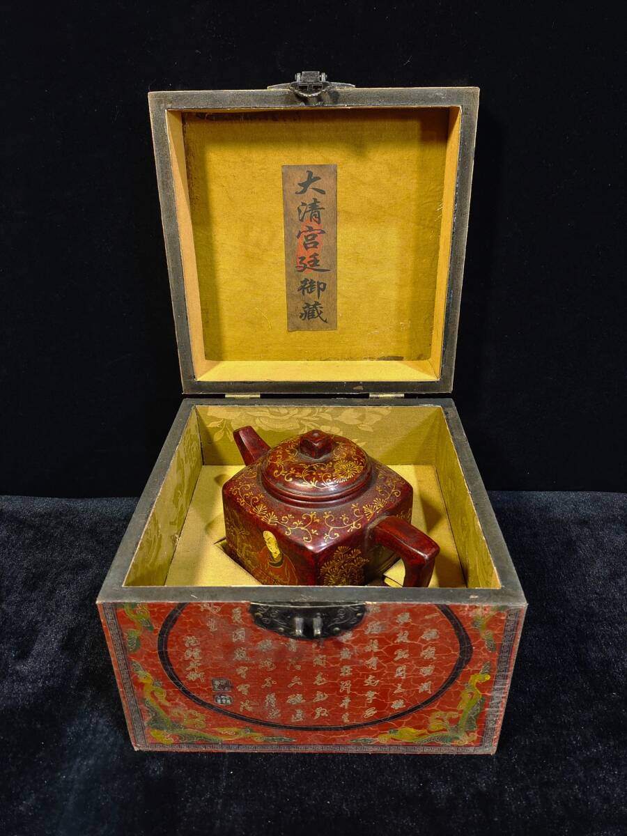 *珍品旧蔵* 清 彩繪漆器盒裝 宮廷藏寶 《荊溪華鳳翔制紫砂壺》漢方壺 極細工 唐物 中国古玩 骨董品 古美味 H45