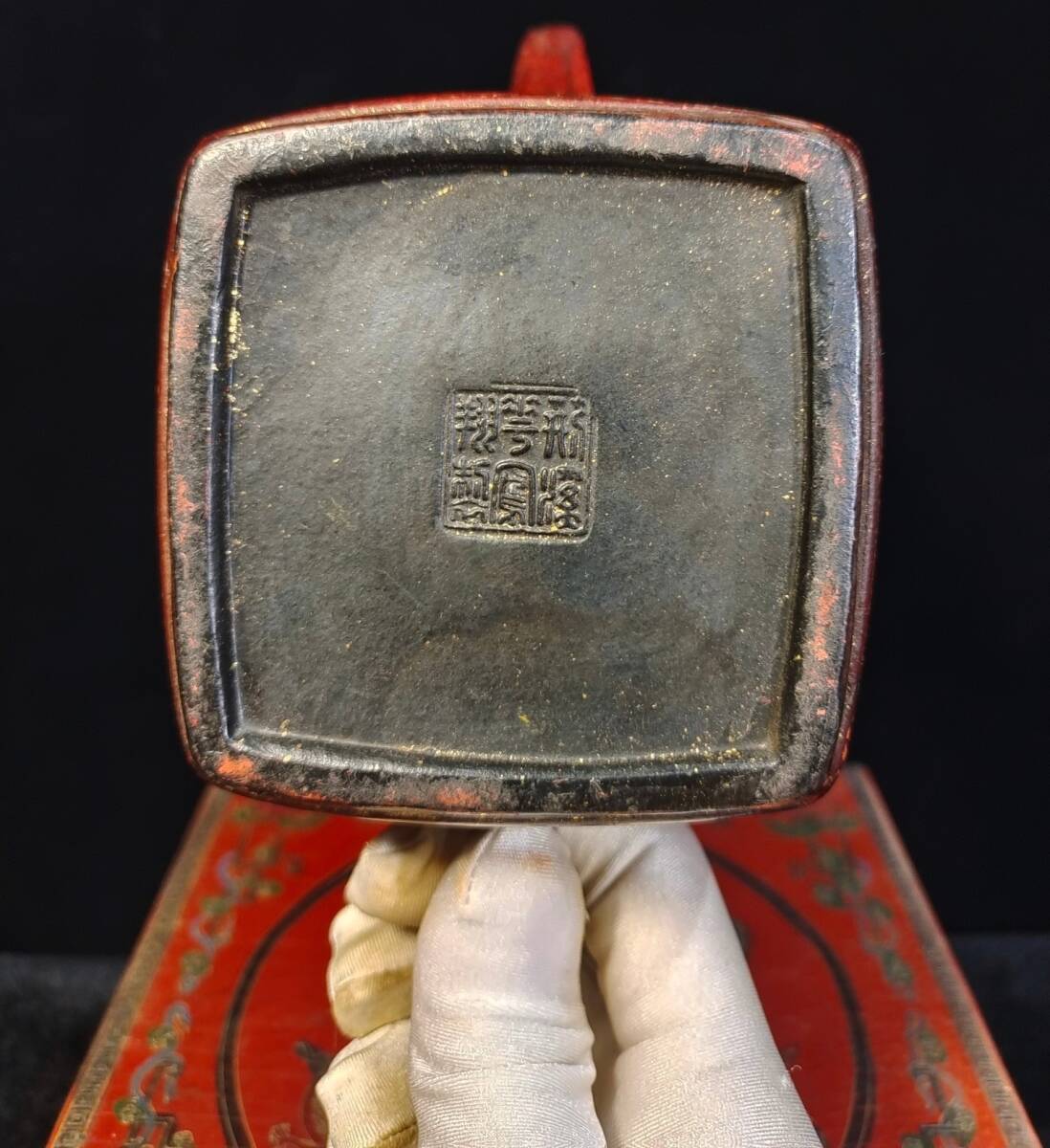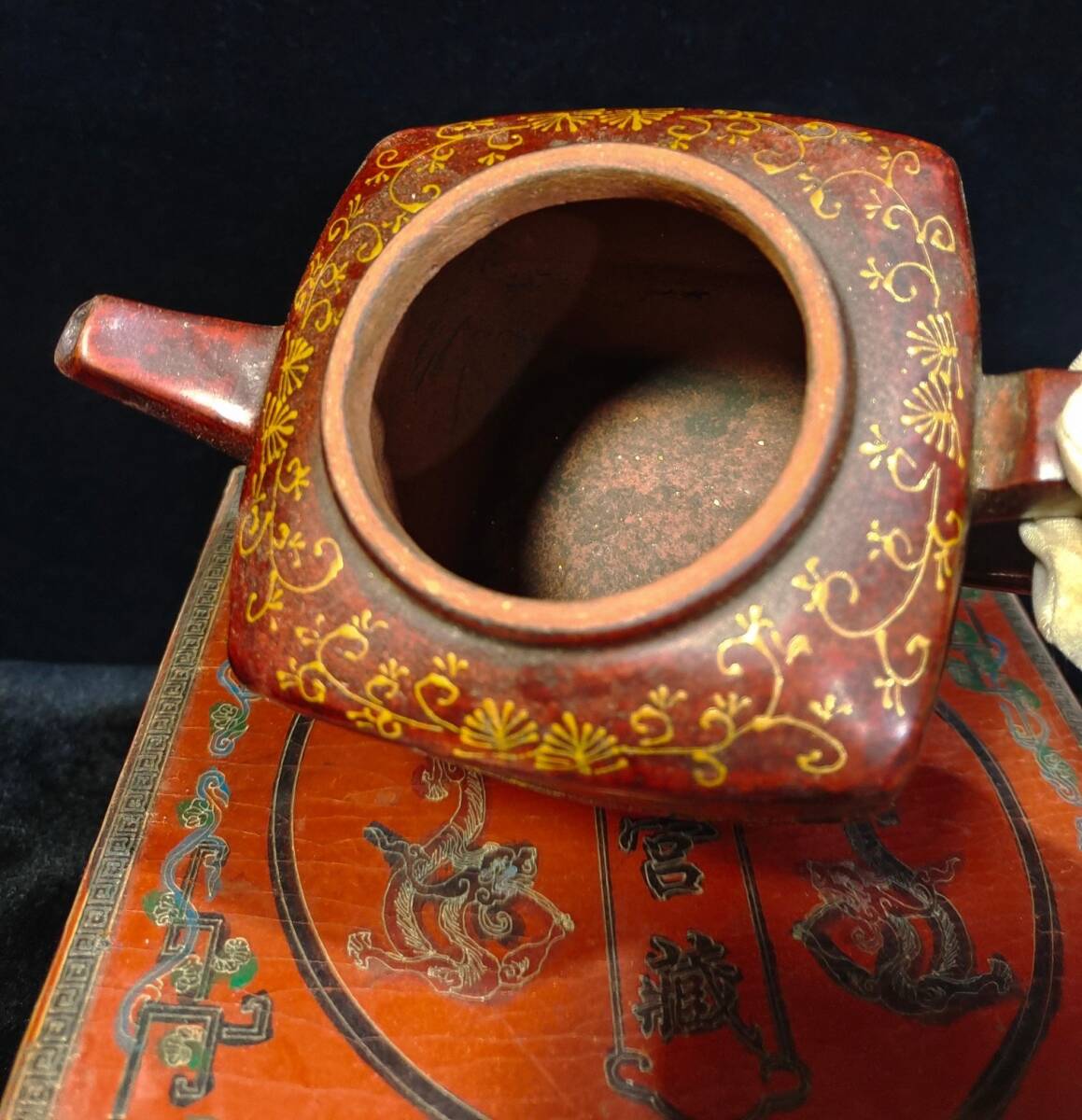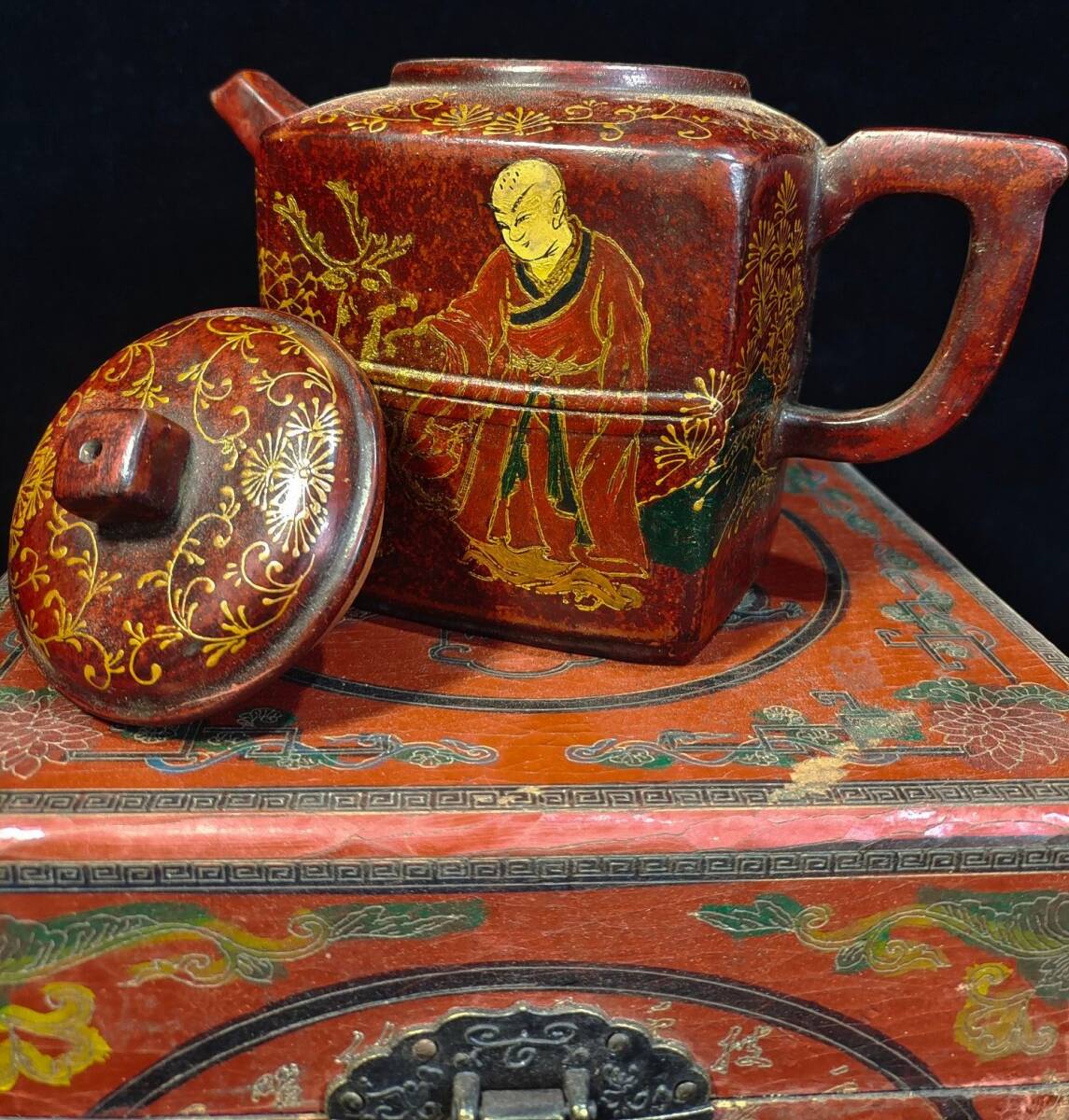 *珍品旧蔵* 清 彩繪漆器盒裝 宮廷藏寶 《荊溪華鳳翔制紫砂壺》漢方壺 極細工 唐物 中国古玩 骨董品 古美味 H45