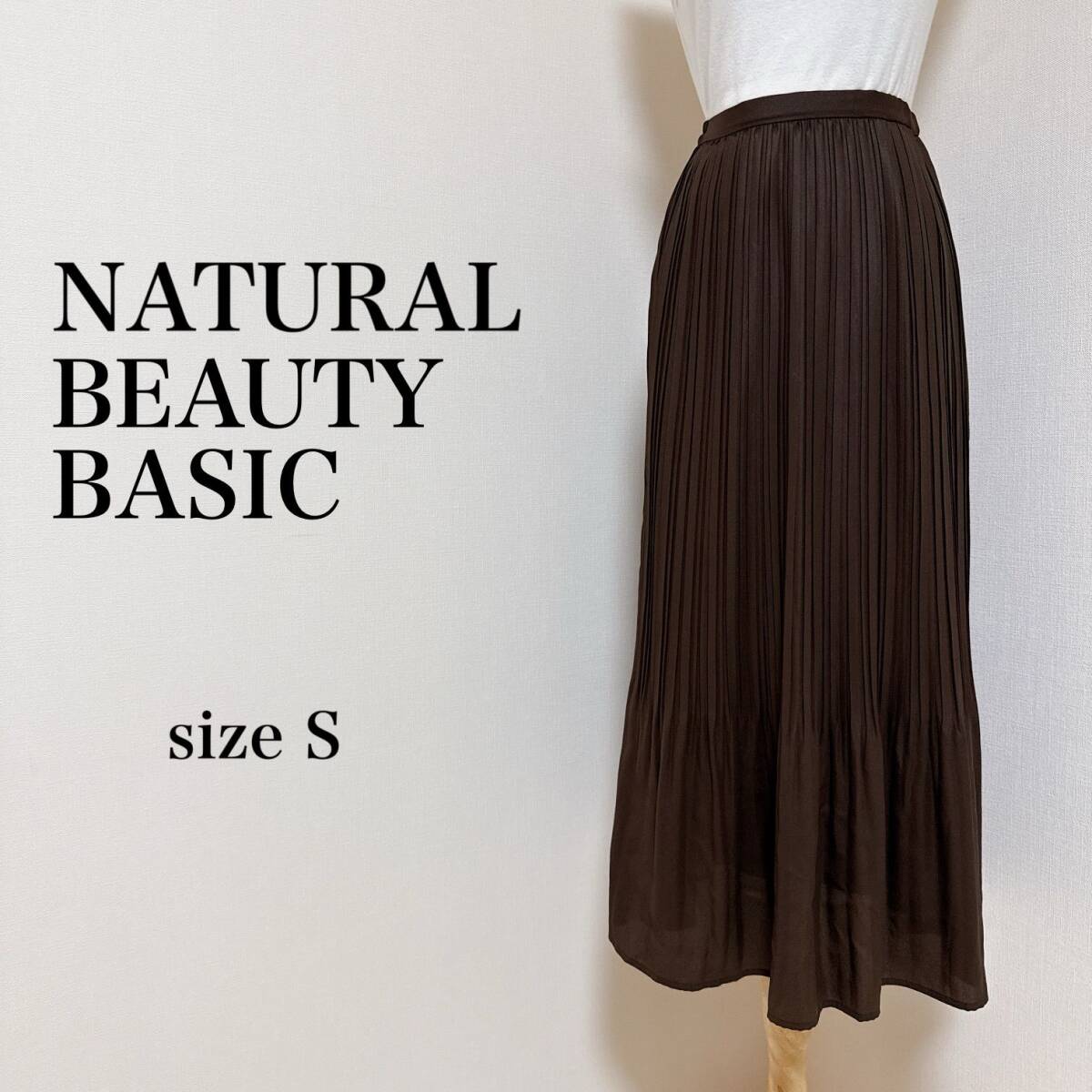 ☆ NATURAL BEAUTY BASIC ナチュラルビューティーベーシック スカート ロング プリーツ ブラウン S 古着 匿名配送 レディース 【1-309】