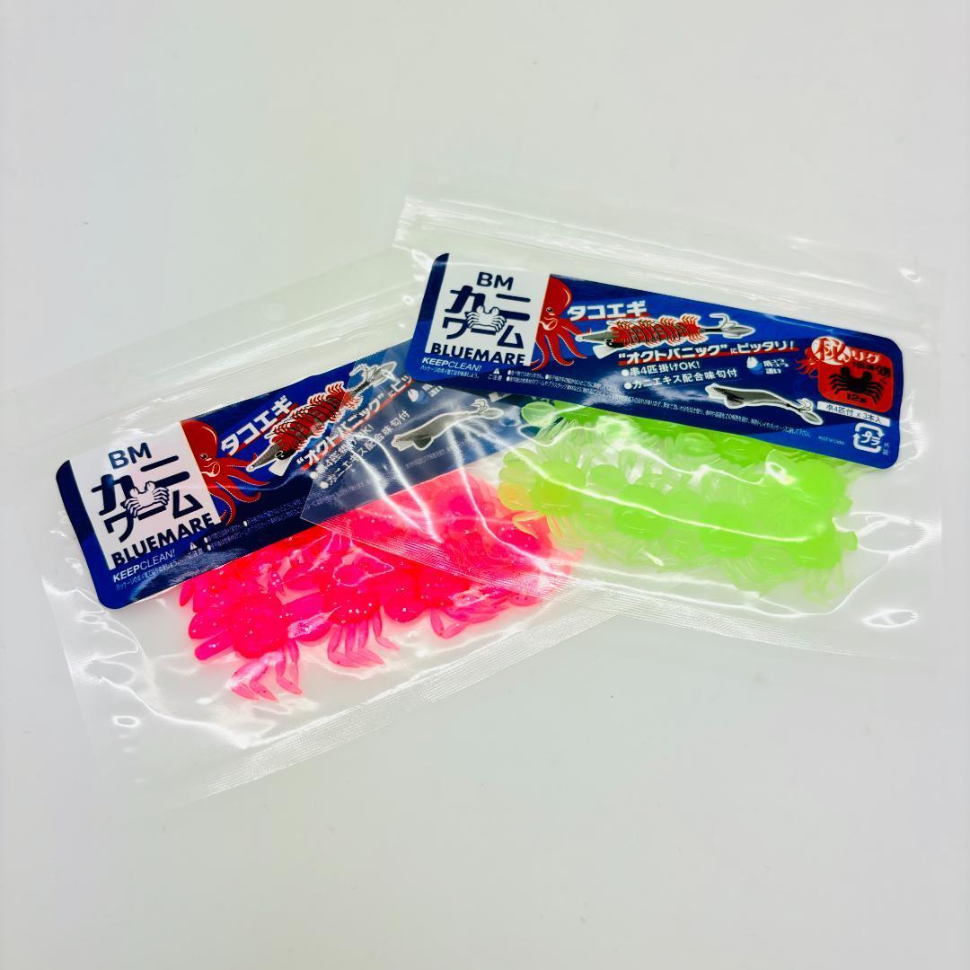 4匹ごとに繋がっていますので、タコエギにの背中に巻き付けたり、切り離して、1匹をフックにセットしたりできるそうです。