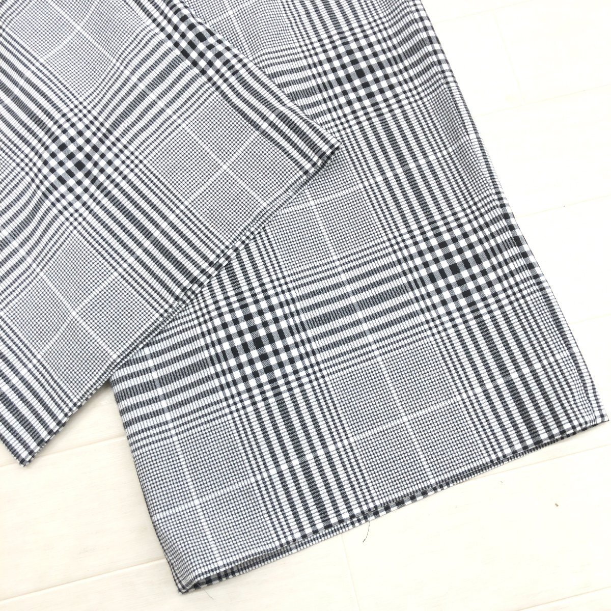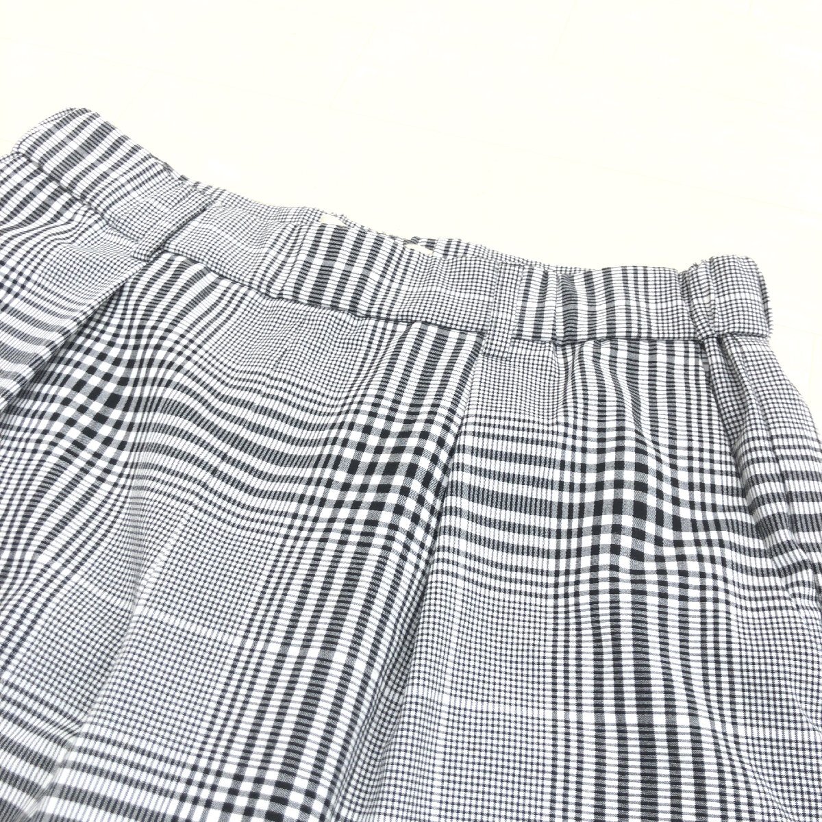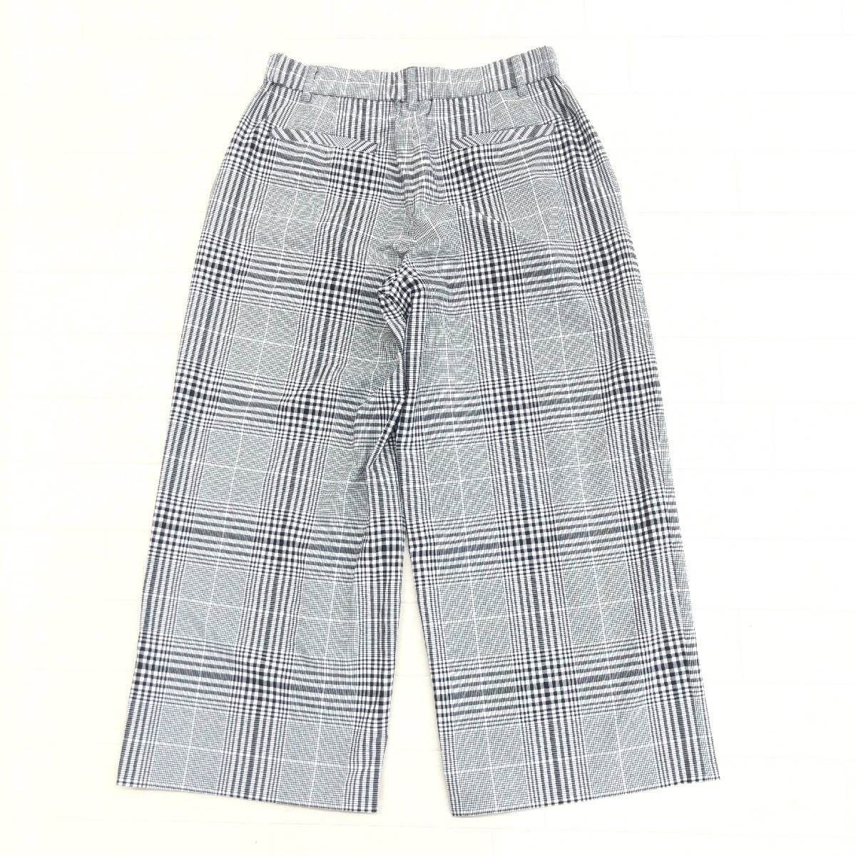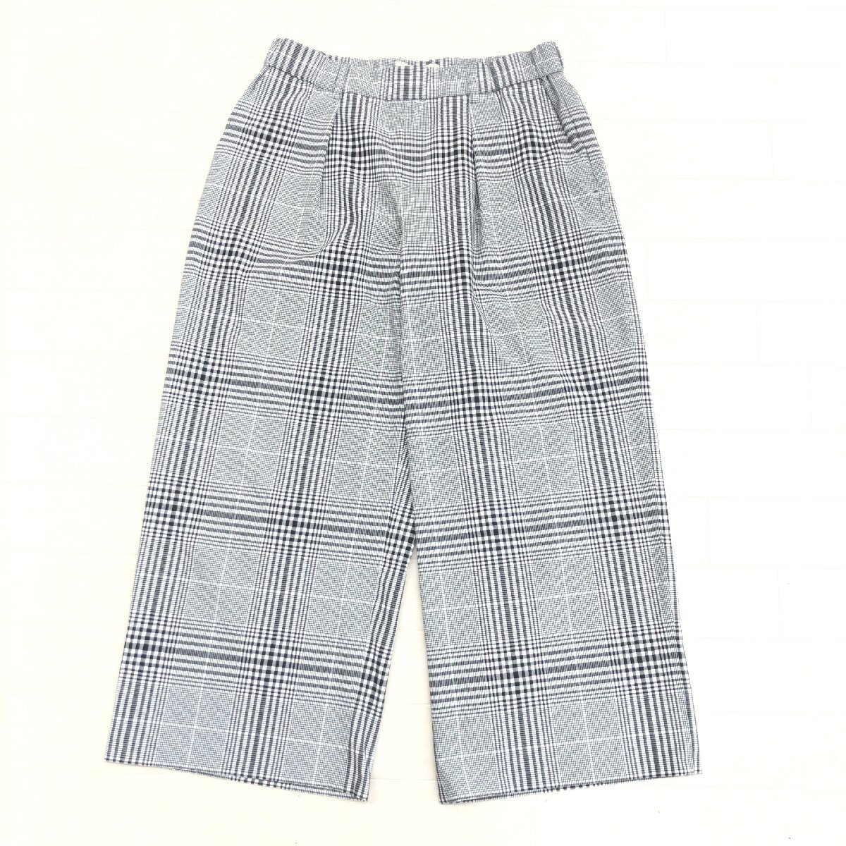 美品 自由区 ジユウク グレンチェック ストレッチ タック ワイドパンツ 38(M) グレー系 イージーパンツ リラックスパンツ レディース