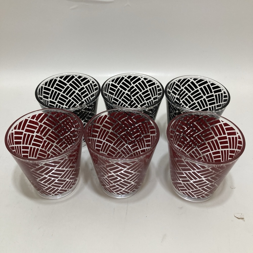 モダン 伝統柄 グラス 網代 模様 赤 黒 和柄 グラス カップ コップ★K3121