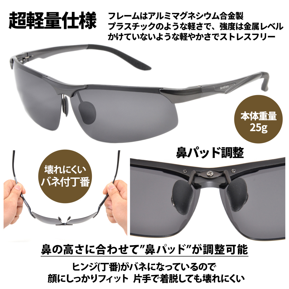 586)偏光サングラス 紫外線カット99.9% UV400 メンズサングラス スポーツ アウトドア ドライブ 釣り 超軽量金属フレーム,新品!。