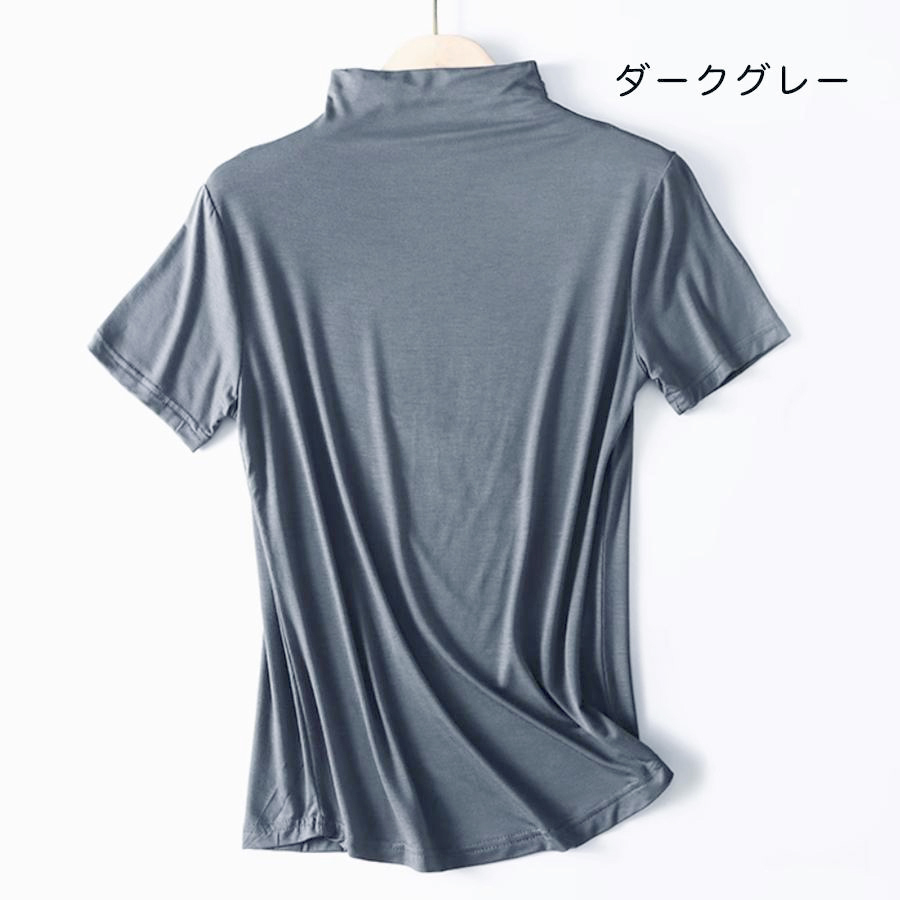 新品 ダークグレー 半袖 Tシャツ レディース カットソー 半袖 モックネック ハイネック free16