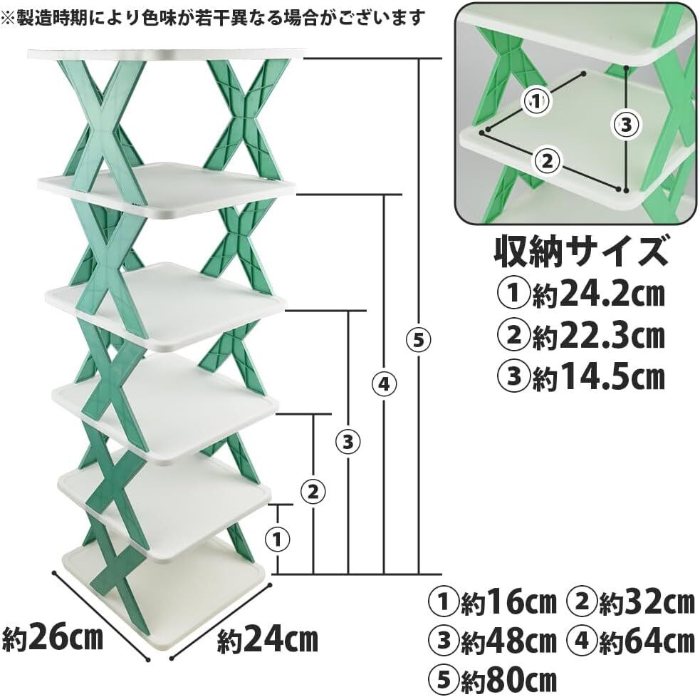 折り畳み式シューズラック 6層 コンパクト 省スペース 下駄箱 スニーカー ヒール サンダル ブルー