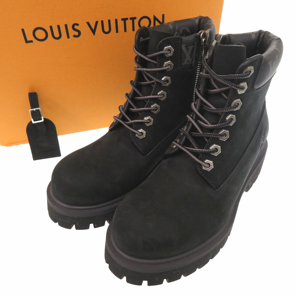 新品同様 ルイ ヴィトン Timberland コラボ アンクルブーツ ティンバーランド FA0274 レザー ブラック LV 0703 LOUIS VUITTON