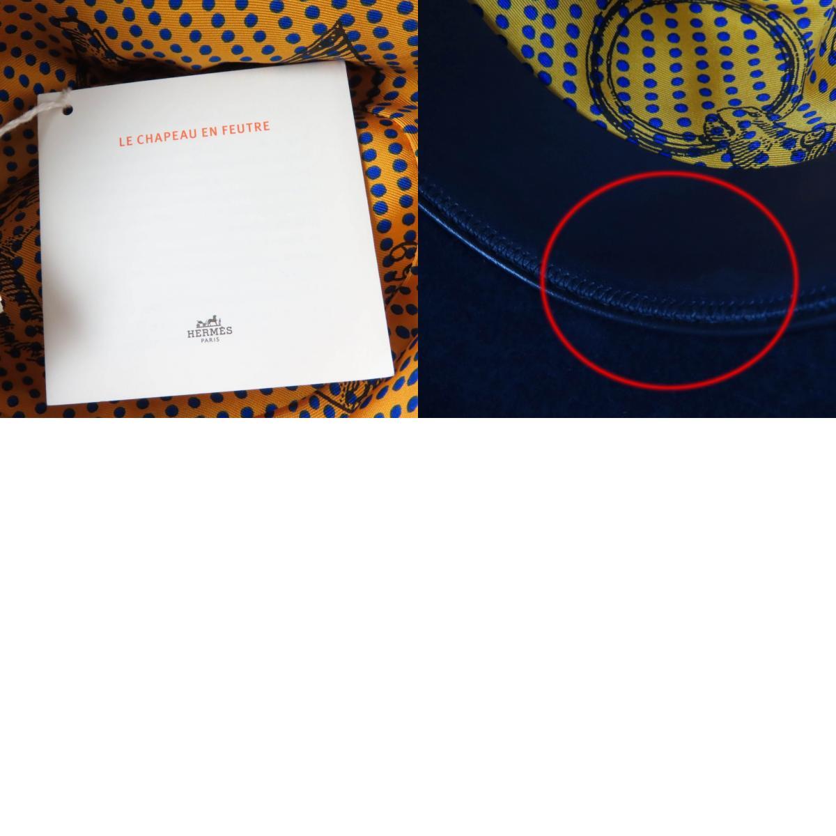 | 素材 (material) | 本体:ラビットフェルト90% :フェルト10% 一部:ビスコース(レーヨン)60% :コットン40% 裏地:シルク100% 一部:カーフスキン | ||||||||||||||||