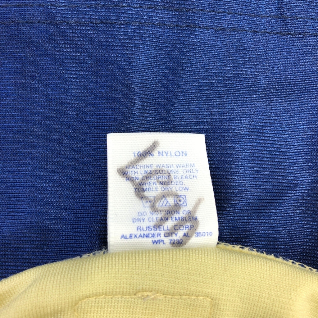 | [商品管理番号] U2304 [ブランド] RUSSELL ATHLETIC/ラッセル [サイズ] L [実寸サイズ] 肩幅:約61cm 着丈:約77cm 身幅:約62cm 袖丈:約21cm [主な素材] 表地 : ナイロン [色] ゴールド [仕様] 生産国 : USA製 80年代 [状態] 汚れ:肩、胸、裾 | |||