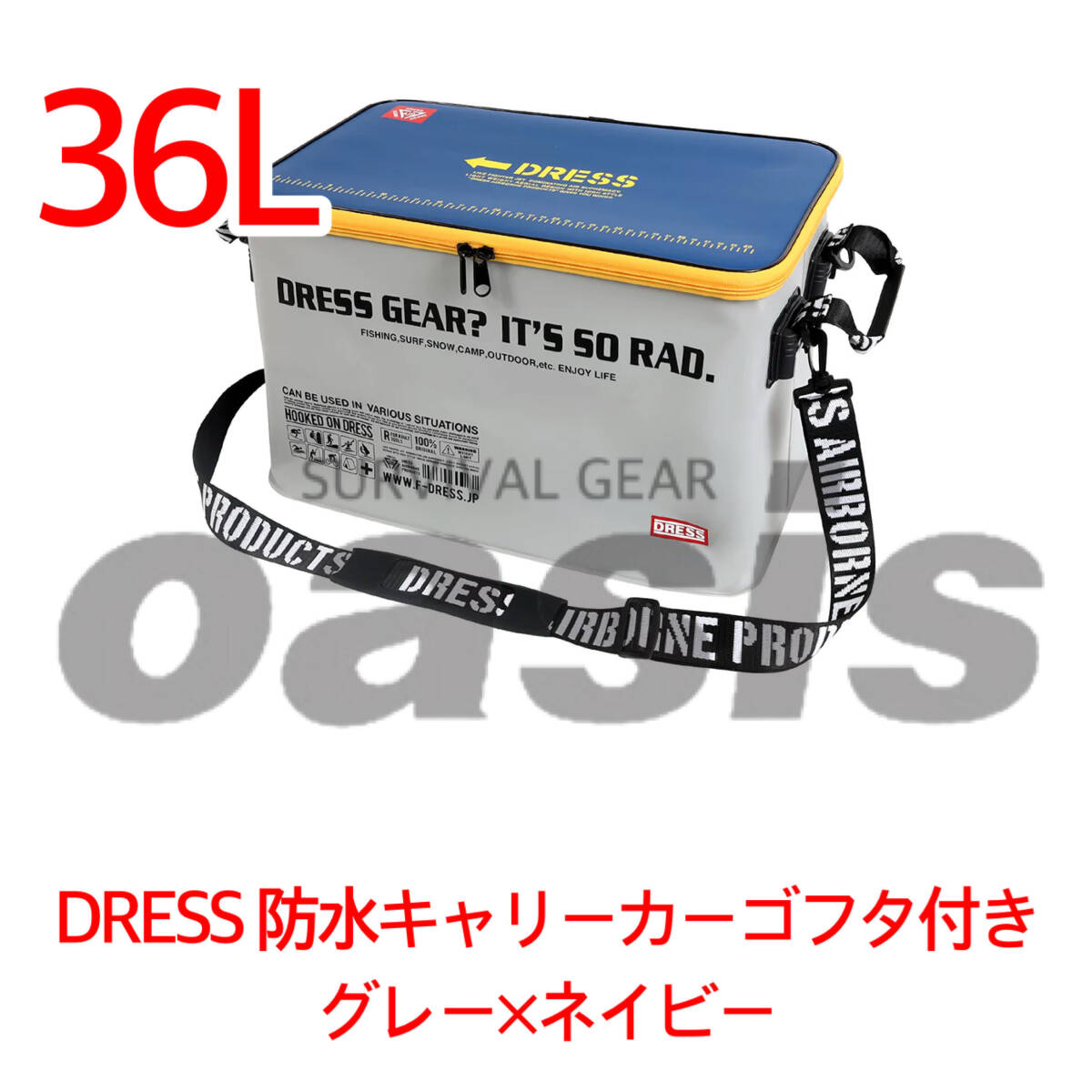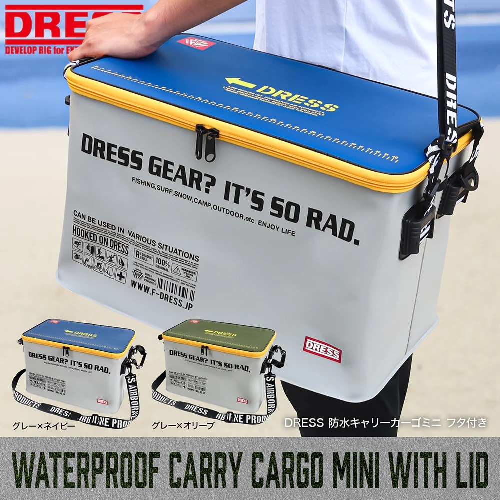 DRESS 防水キャリーカーゴミニ フタ付き グレー ネイビー 36L 約300×460×28.5mm 車の後部座席 浮き輪や水にぬれたものなどを収納できます