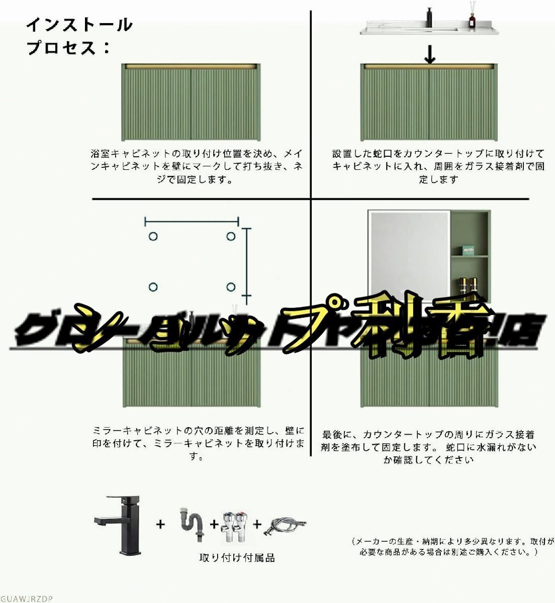 製品材質:スペースアルミニウム、セラミックシンクキャビネットのサイズ:長さ*幅*高さ61*47.5*48cmシンクの深さ:約14cm(5.5インチ)シンクの掃除方法: 表面を乾いた状態に保ち、柔らかい布で拭いてください。インストールプロセス:1. バスルームキャビネットの設置位置を決定し、メインキャビネットを壁にマークしてパンチし、ネジで固定します。2.取り付けられた蛇口をカウンタートップに取り付けてキャビネットに入れ、周囲をガラス接着剤で固定します3.ミラーキャビネットの穴の距離を測定し、壁に印を付けて、ミラーキャビネットを取り付けます。4. 最後に、カウンタートップの周りにガラス接着剤を塗布して固定します。 蛇口に水漏れがないか確認してください取り付け付属品: 標準黒色のホットおよびコールド合金蛇口、縦樋、ホットおよびコールドアングルバルブ、尖った 4 点パイプ入口パイプ。 (メーカーの生産・納期により多少異なります。取付が必要な商品がある場合は別途ご購入ください。)