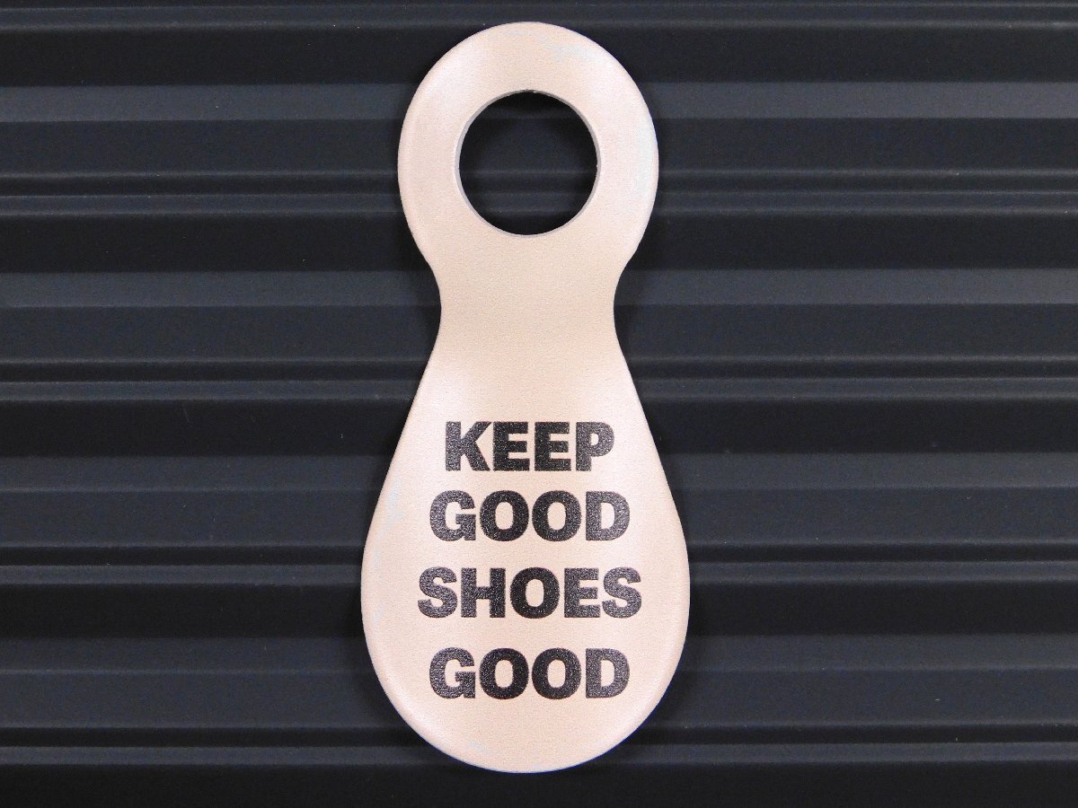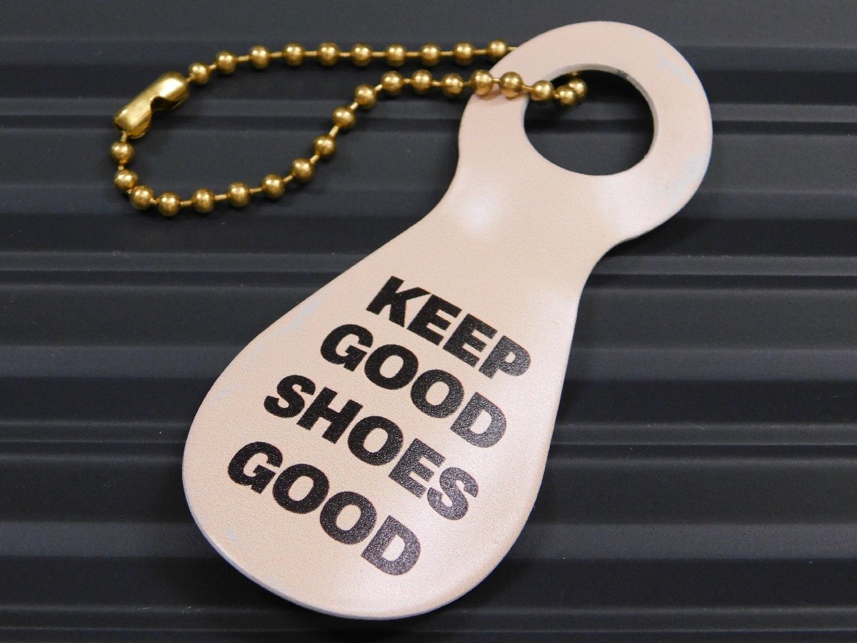メタルボディーにカラーコーティングが施された、「シューホーンキーホルダー」です。