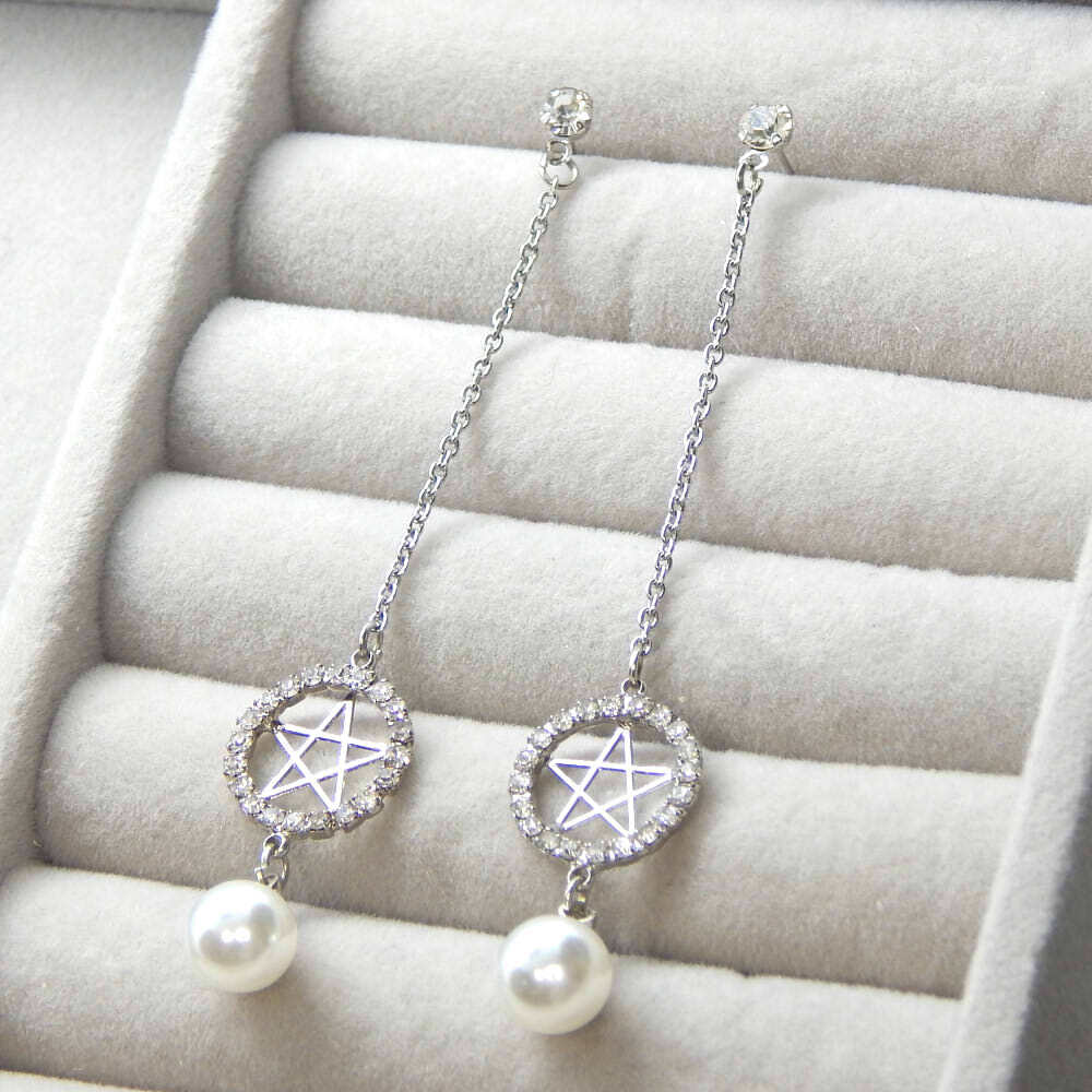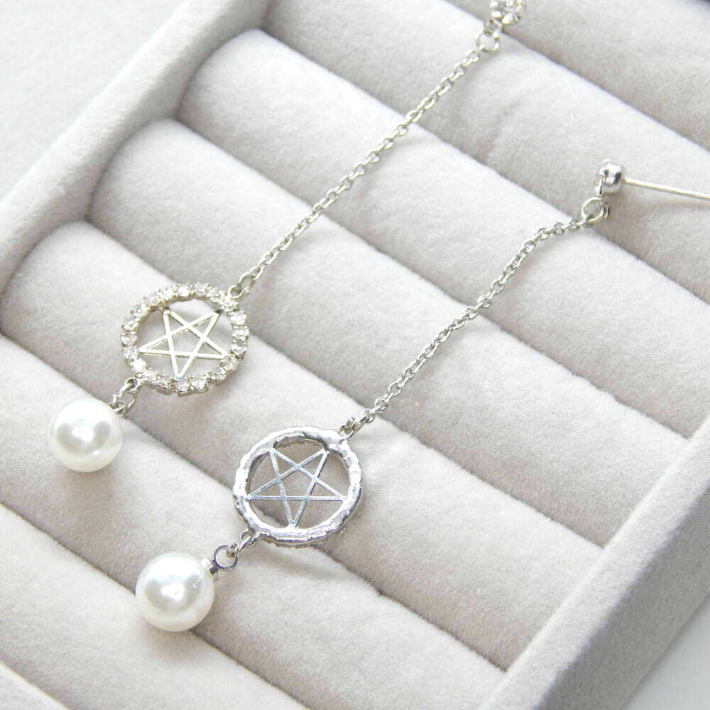 輝きを放つ星と淡水真珠が美しくマッチした、ロングピアスが新登場しました!