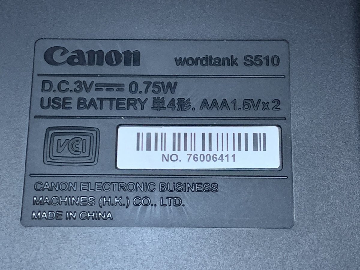 【WD-8250】Canon 電子辞書 wordtank S510 薄型コンパクトモデル ケース付 全5コンテンツ 通電確認済 現状品 東京引取可【千円市場】