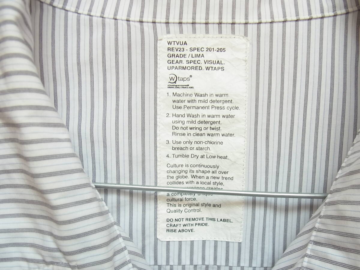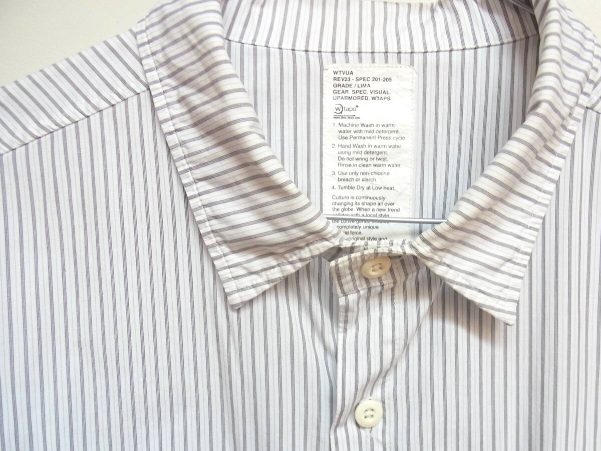 WATPS(ダブルタップス)の白地のストライプのワークシャツで、モデル名は確か「VATOS」だったと思います。