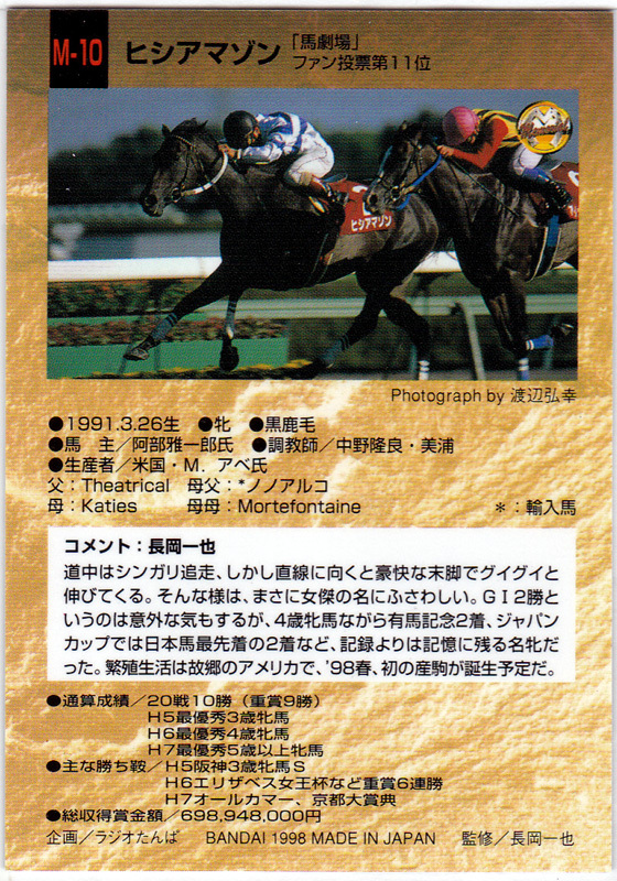 バンダイ サラブレッドカード 1997年下半期版 No.M-10 メモリアル MEMORIAL ヒシアマゾン 競馬カード トレカ JRA 日本中央競馬会 競馬