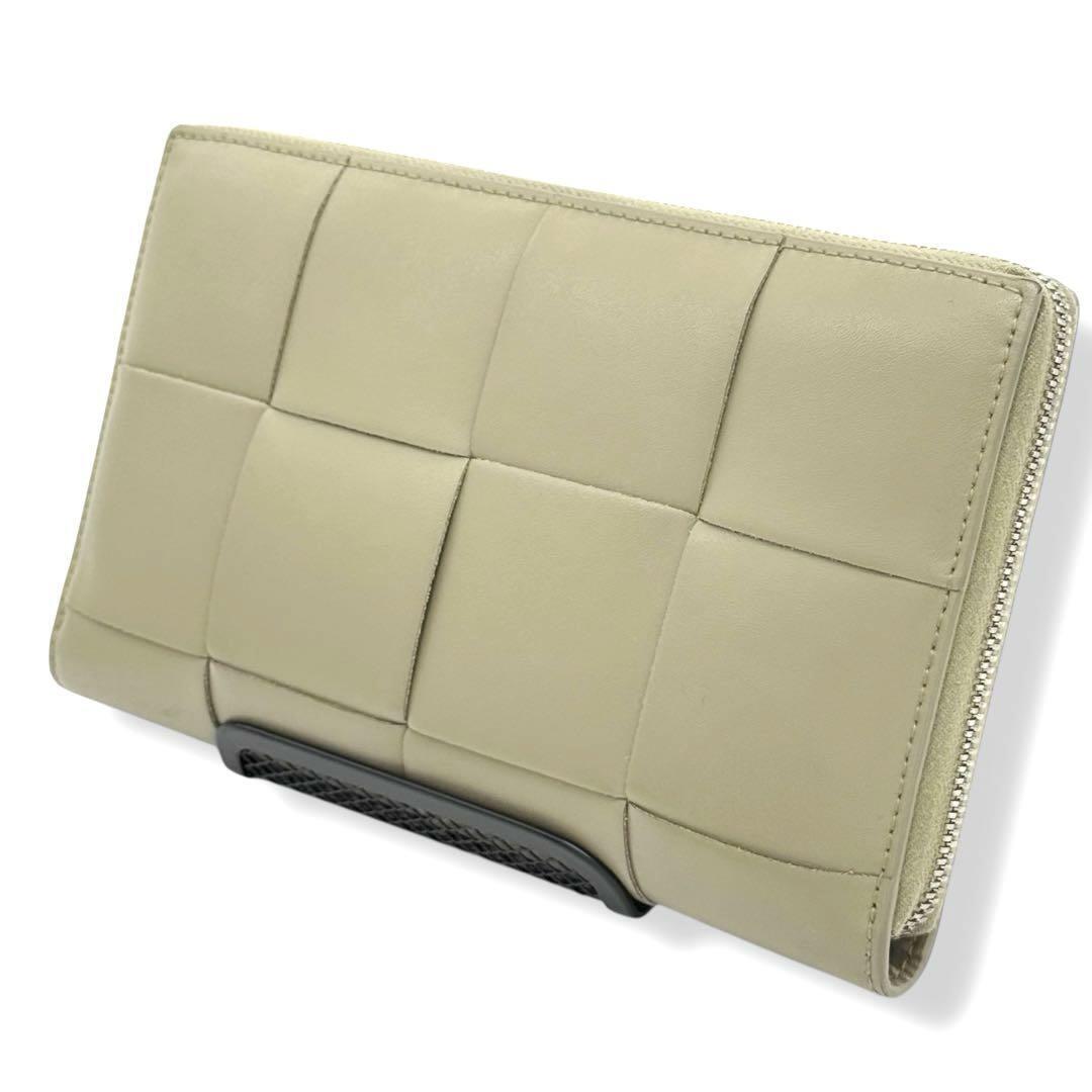 ICチップ ボッテガヴェネタ 長財布 カセット カーキ ボッテガ 財布 ラウンドジップウォレット レザー マキシイントレチャート cm3