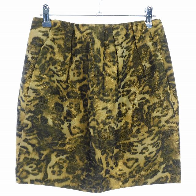 マカフィー MACPHEE トゥモローランド ヒョウ柄スカート 台形 タック バックファスナー コットン レオパード 34 ベージュ ボトムス /T2 レディース