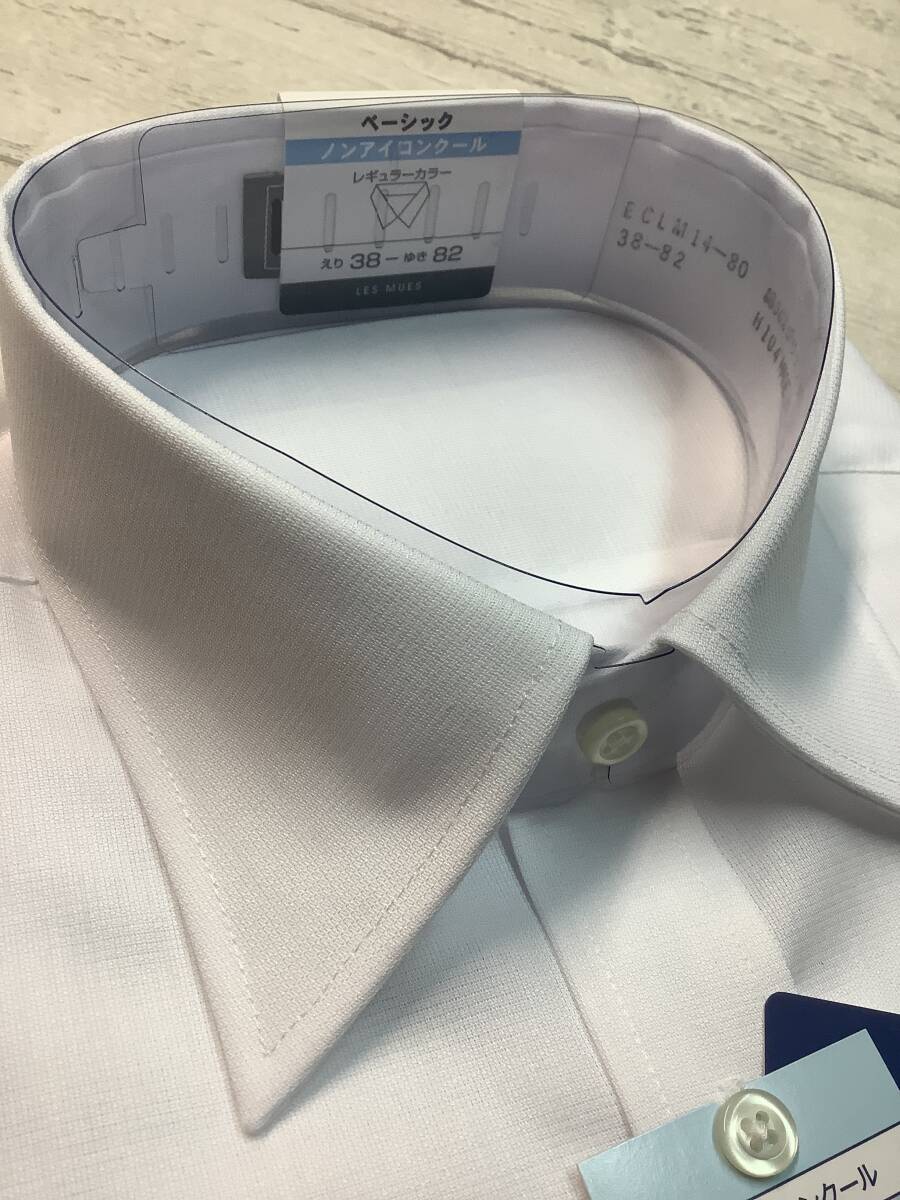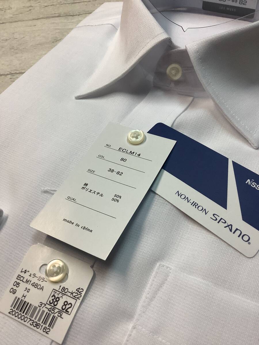 新品未使用 38-82 長袖 ★白レギュラーカラードレスシャツ ビジネス ノンアイロンクールに