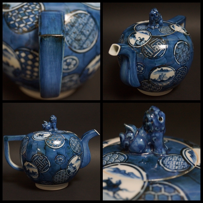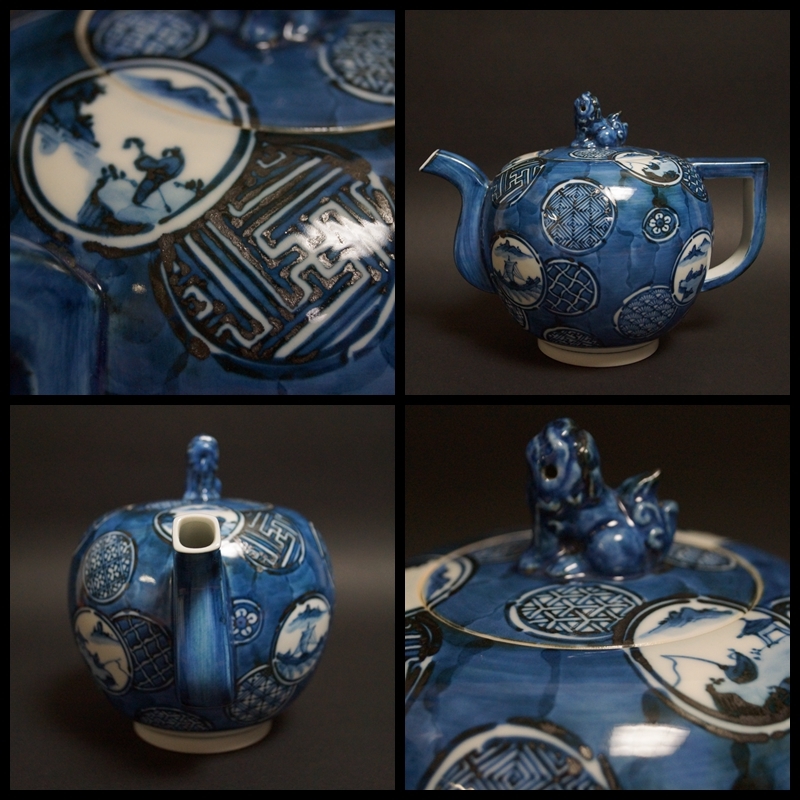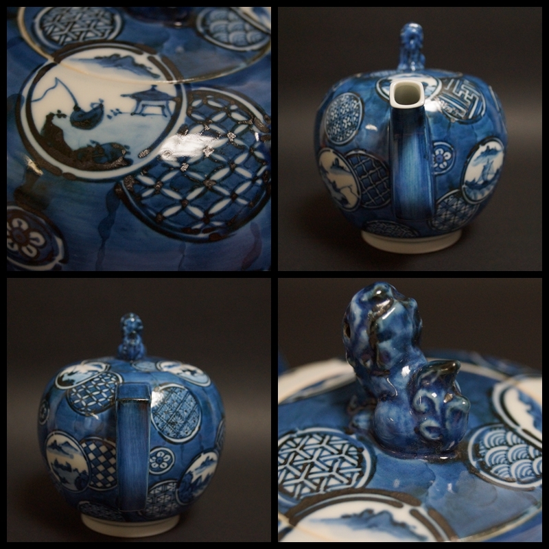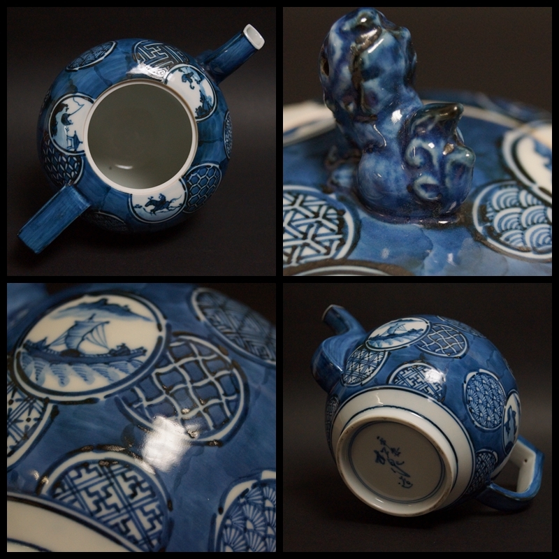 ☆煎茶道具☆京焼 平安土山松泉造 染付古紋青華祥瑞文 濃味 水注 急須 獅子摘 在銘 共箱★美品★5D0516 サイズ(約): 幅11.5cm、注ぎ口含む長さ18.2cm、高さ14cm、重さ336g |