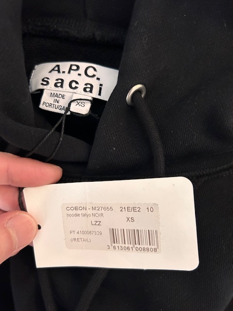 未使用品 sacai × A.P.C. SA.P.C.AIロゴ コラボレーションスウェットパーカー ブラックXS フ―ディー