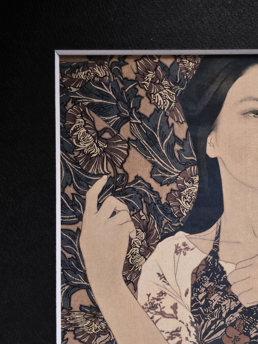 カラー額装をご希望のお客様は、別途額代金、10,000円です。新品、木製枠、枠色はホワイト、アクリルガラス、マット付きです。その他、ご希望のお色がございましたら、お気軽にご相談ください。≫