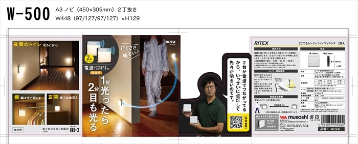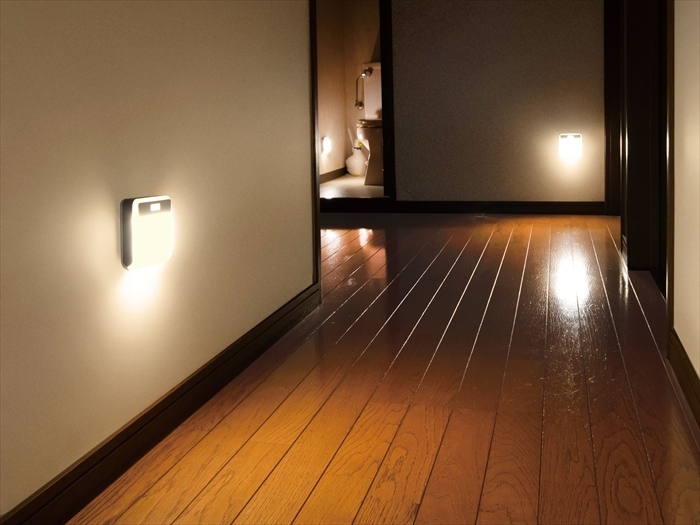 | 1台付いたら、2台目も。 ワイヤレスで同時点灯。 人が来ると人感センサーが探知し、暗い場所に離れて設置してあるライトが同時に点灯します。 合計8台まで増設することができ、無線接続可能です。 人がいなくなると消灯します。 ふわっと点灯・消灯。 階段や廊下に安心の誘導灯です。 |