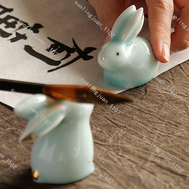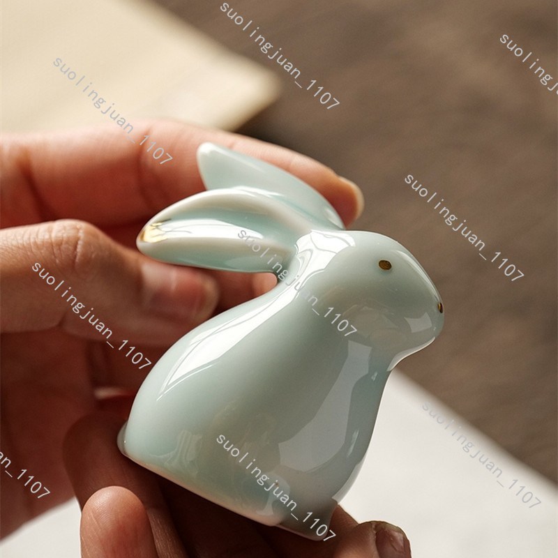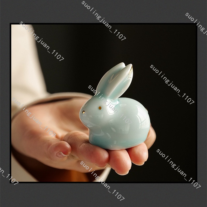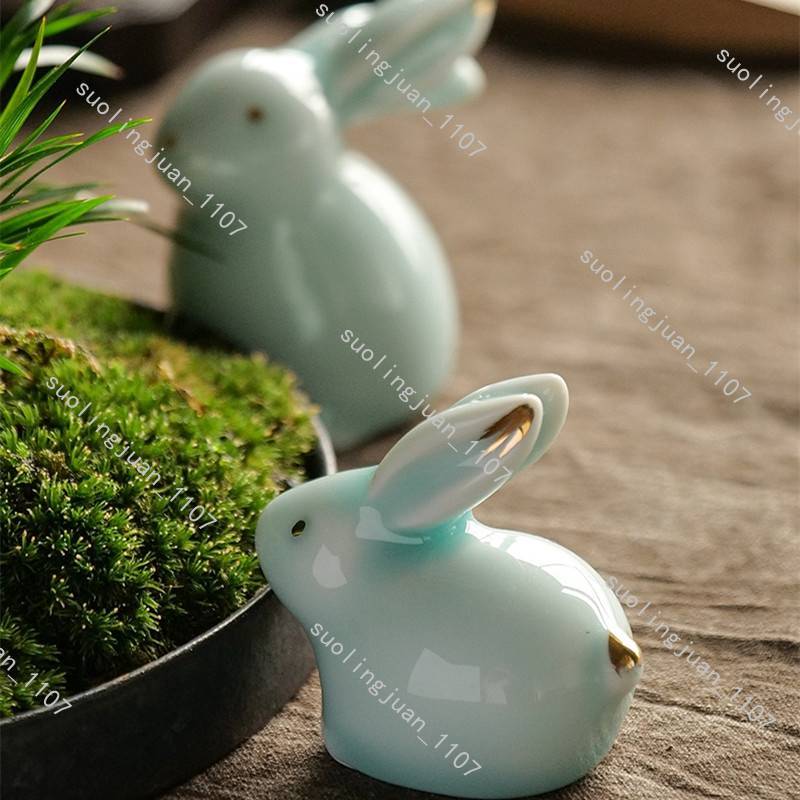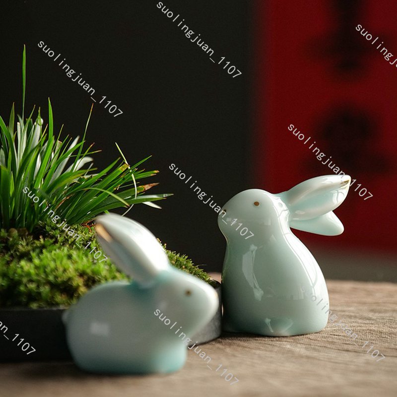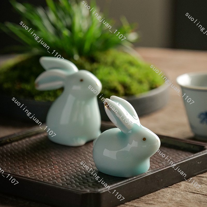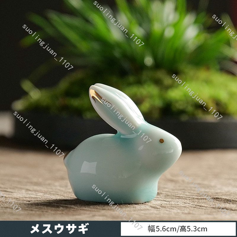 ハンドメイド 2点セット ウサギ置物 茶道具 陶器 焼物 うさぎ 置物 中国陶器 工芸品 民芸品 インテリア置物#0328