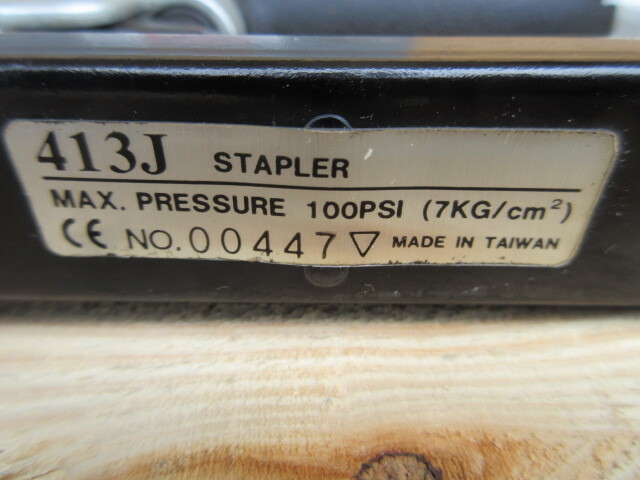 ★Ez-fasten 13mm エアータッカー 413J ・ステープル肩幅:4.0mm 長さ:13mm ・使用空気圧 7Kgf 常圧 ※本体記載より ★ステープルが無い為、空打ちとなりますが打ち込みしてる事は確認できました。特にエア漏れの音はありませんでした。ケースに破損してる箇所があります(画像あり)。 ・修理・調整・交換等が必要な状態であるか当方では判断でき兼ねますので「整備前提品」となります。 現状でのお渡しです。作業等ご使用前に落札者様ご負担にてメンテナンスを行ってからご使用ください。 ・当方での動作確認は写真撮影時の1分程度となり、当方動作確認時間以上ご使用いただき不具合が生じた場合も修理・調整等は落札者様ご自身・ご負担にて行ってください。 ・あくまでも中古品です。使用時間・経年・修復履歴は不明です。また、いつ・どこが・どうなるか分からないのが中古品ですので、ご理解ある方のみご入札ください。 ★付属品については1番目の画像にあるものがすべてになります。1番目の画像にてご確認頂けないものはすべて欠品しております。(台車と動作確認撮影の際に使用しているものは付属品ではございません。)状態につきましては、軽清掃のみ、写真に写りきらないキズ、汚れ、凹み等あります。 ★専門ではございませんので質問にお答えできない場合がございます。詳しい仕様等はメーカーのホームページをご覧ください。 ★当方では実際に作業に使用はしておりません。使用時間・使用経年等の詳細は分かりません。 ★スムーズなお取引を心掛けているため、落札後2日以内にご連絡を頂ける方、送料ご連絡後2日以内にご入金手続きを頂ける方のみご入札ください。 ★ご連絡無く期日を経過した場合は落札者都合によるキャンセルとさせていただきます。 ★※必ず注意事項・発送詳細欄をお読みください。ご入札頂いた時点で以下の内容に承諾いただいたものとさせていただきます。 |